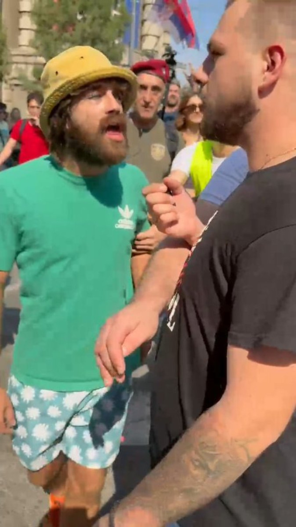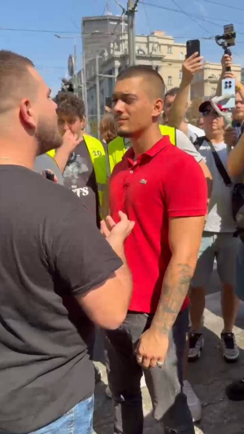 Naime, on je mirno šetao raskrsnicom Nemanjine i Kneza Miloša kada ga je masa muškaraca opkolila i počela besomučno da ga vređa i da mu preti. Zanimljivo je da je među "mirnim studentima", koji su se istakli u pretnjama, najviše bilo nasilnih muškaraca, kao i onih sumnjivog ponašanja. Oni su Tiktokera gurali, saplitali ga i bukvalno ga fizički izgurivali sa svog skupa.