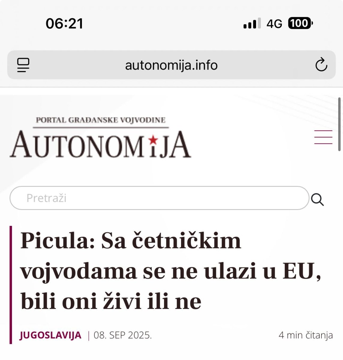 Dobrodošli su blokaderi koji se dodvoravaju Piculi koji se hvali Olujom i svojom puškom kojom je ubijao Srbe.