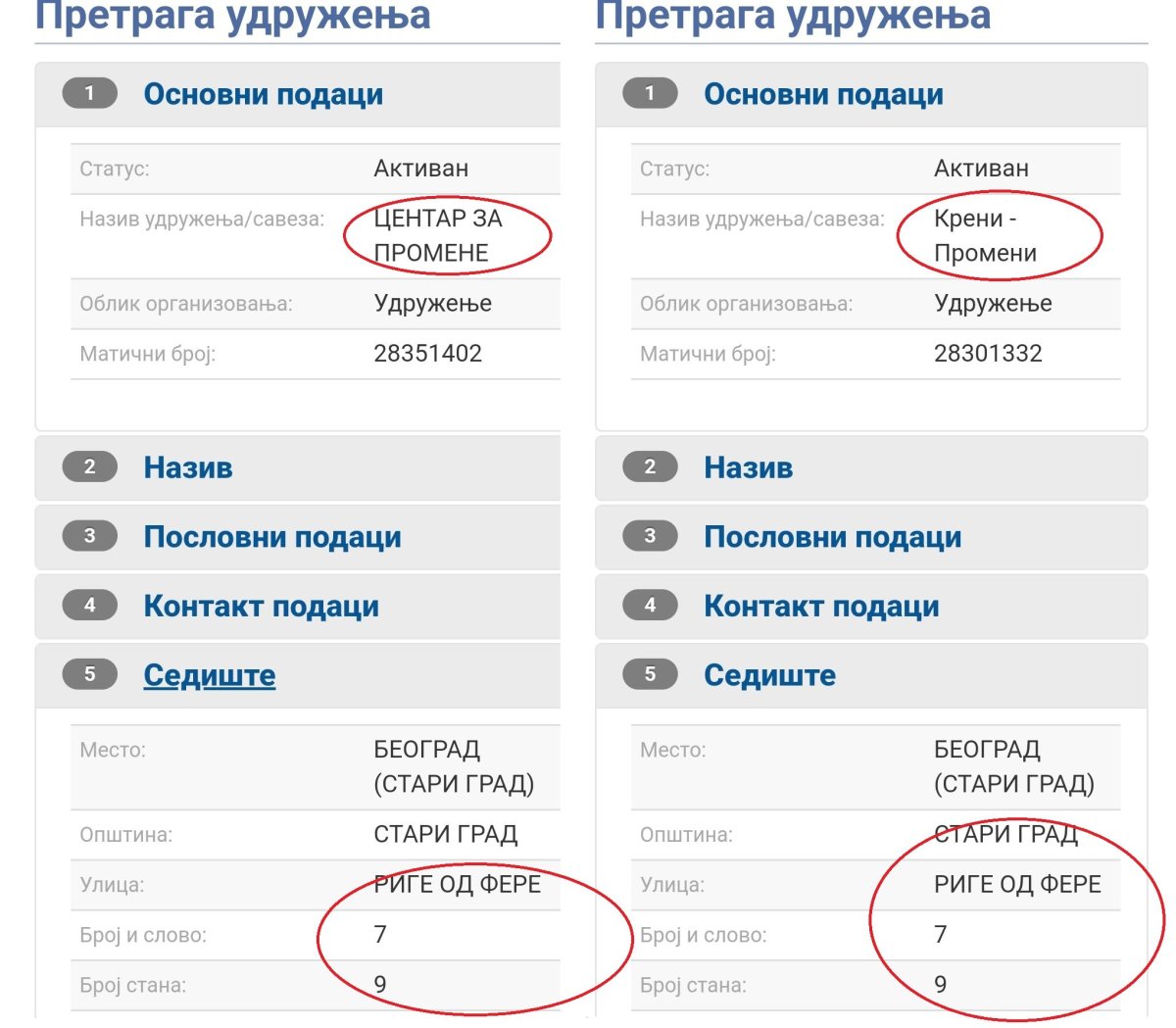 Ta organizacija, međutim, nije baš fantomska - registrovana je na adresi Rige od Fere 7, istoj adresi gde je registrovan i pokret "Kreni - promeni" Sava Manojlovića!