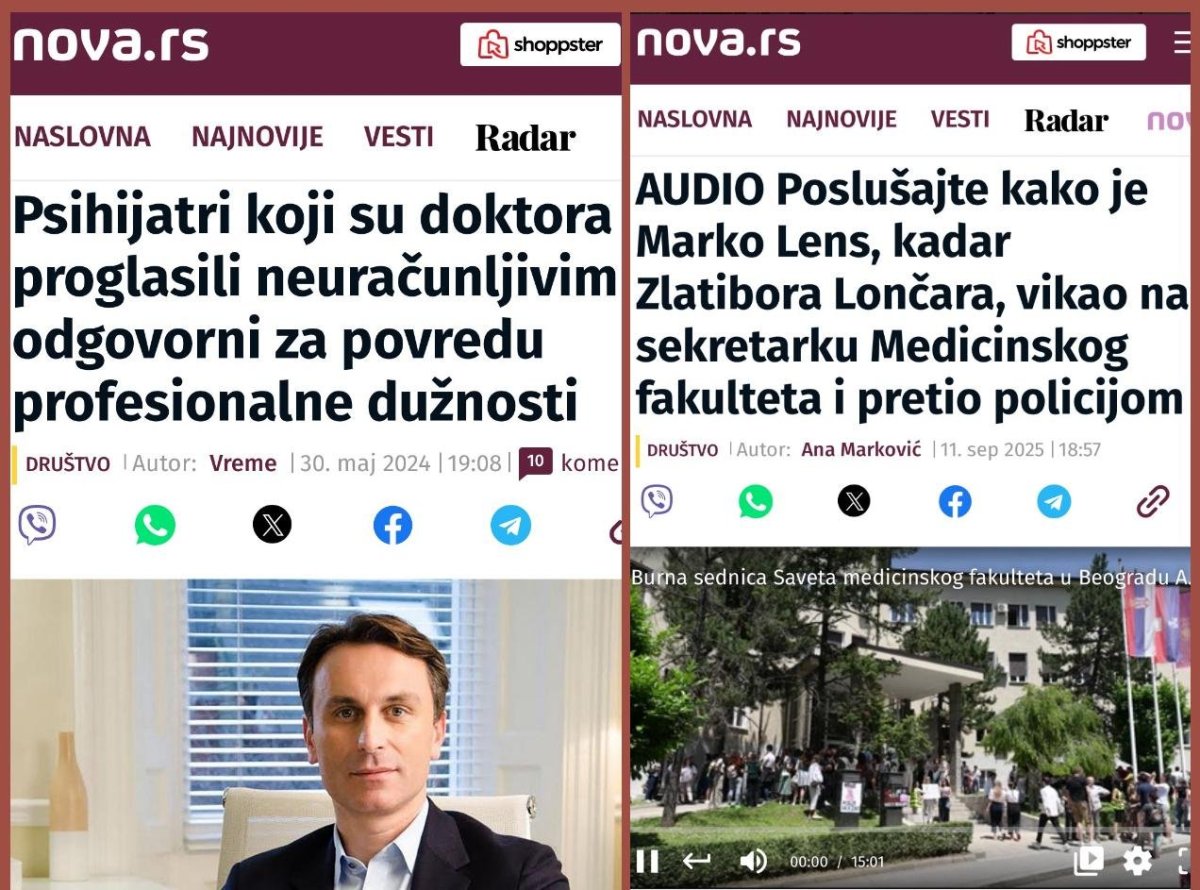 Tajkunski zgubidanski portal 'Nova.rs' su 30. maja 2024. objavili tekst o doktoru Marku Lensu sa naslovom "Psihijatri koji su doktora proglasili neuračunljivim odgovorni za povredu profesionalne dužnosti", braneći ga svim silama.