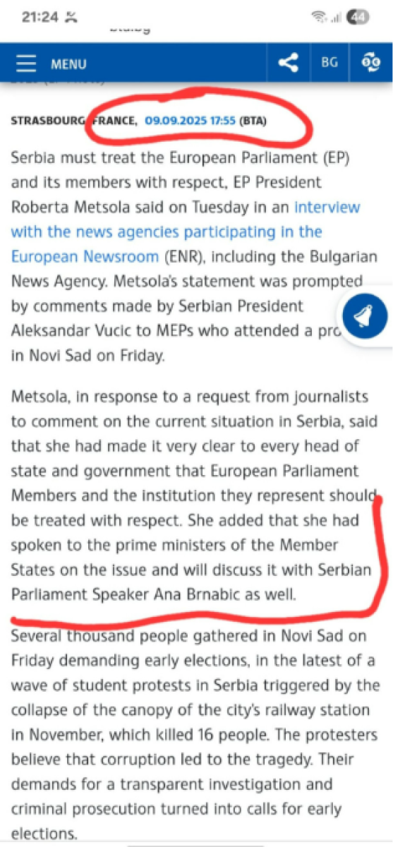 Treba napomenuti da je susret Ane Brnabić i Mecole planiran još pre tri dana, što se vidi i u programu predsednice Evropskog parlamenta.