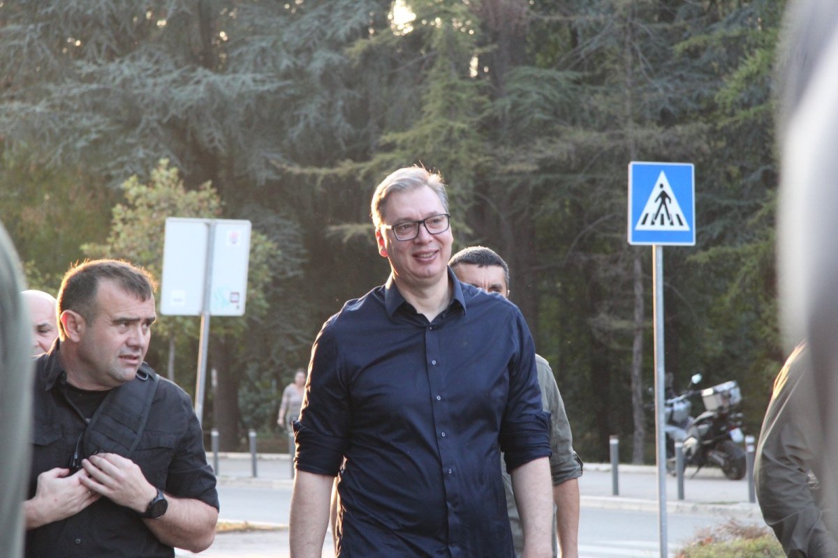Predsednik Srbije Aleksandar Vučić prisustvuje skupu na Voždovcu.