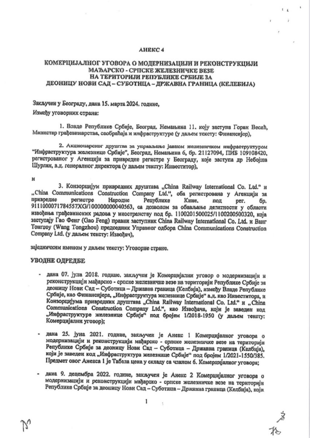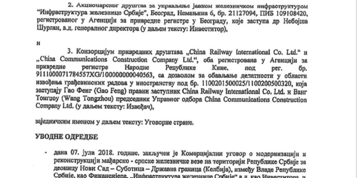 - Pitanje je čiji su potpisi na svakoj strani ovog ali i drugih aneksa? Da pomognem nijedan potpis nije iz Vlade Srbije i ministarstva građevinarstva, saobraćaja i infrastrukture. Svi potpisi, koji garantuju da su aneksi u skladu sa zakonom, potpisani su od strane lica iz Skupštine Infrastrukture Železnice Srbije.