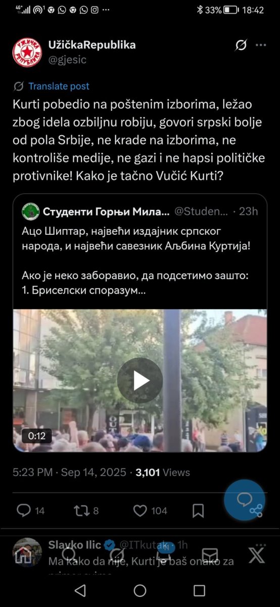 Oni su u jednoj od svojih objava na društvenoj mreži "Iks" otovreno pohvalili Kurtija kako ne krade na izborima, a zaboravljaju da su tamo građani glasali u metalnim kutijama sa puškama uperenim u njih.