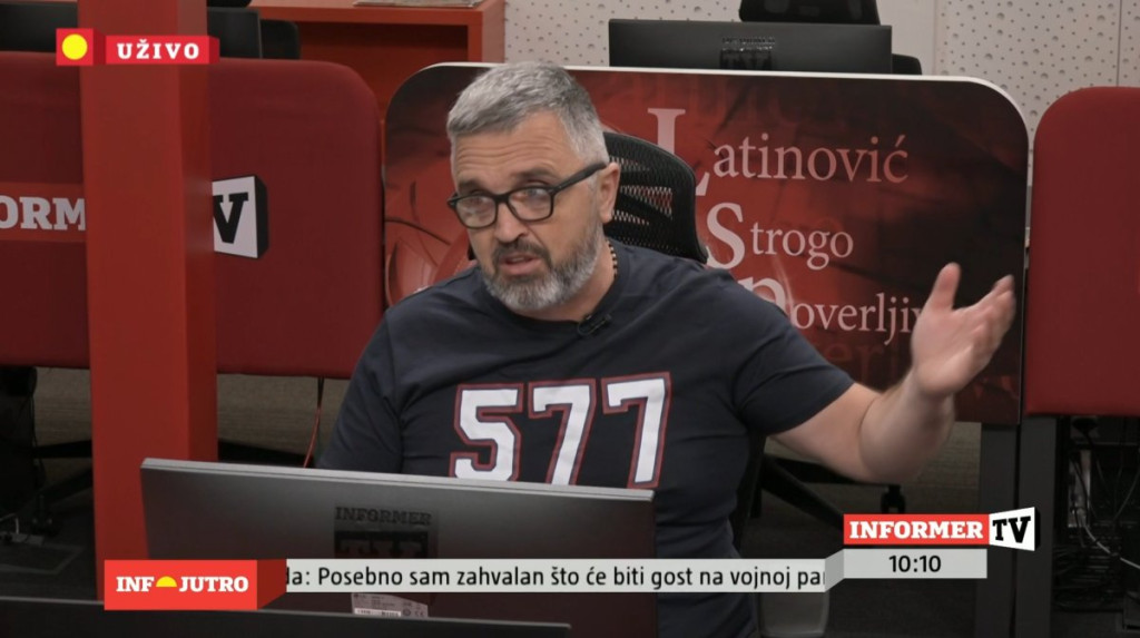 Na dan kada se u Srbiji održava veličanstvena vojna parada, o čemu sve informacije možete saznati u našem blogu uživo iz minuta u minut, Vučićević je došao u majici sa natpisom 577.