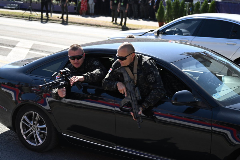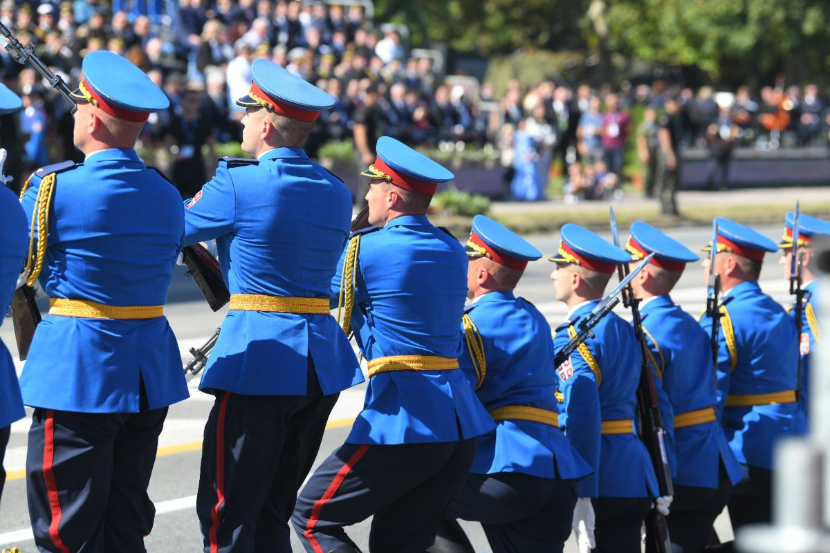 Današnjoj vojnoj paradi prisustvovali su predsednik Ujedinjenih Arapskih Emirata, delegacija Kraljevine Bahrein, prestolonaslednik Dubaija, predsednici skupština i vlada Srbije i Srpske, srpski član Predsedništva Bosne i Hercegovine, ministri u vladama Srbije i Srpske, članovi Skupštine Crne Gore, zamenik premijera Republike Severne Makedonije, ministar odbrane Mađarske, načelnik Generalštaba OS Republike Azerbejdžan, načelnik Zajedničkog štaba OS Bosne i Hercegovine, načelnik štaba vazduhoplovstva i svemira OS Republike Francuske, komandant Nacionalne Garde Ohaja, članovi kolegijuma ministra odbrane i načelnika Generalštaba, predstavnici diplomatskog i vojno-diplomatskog kora.