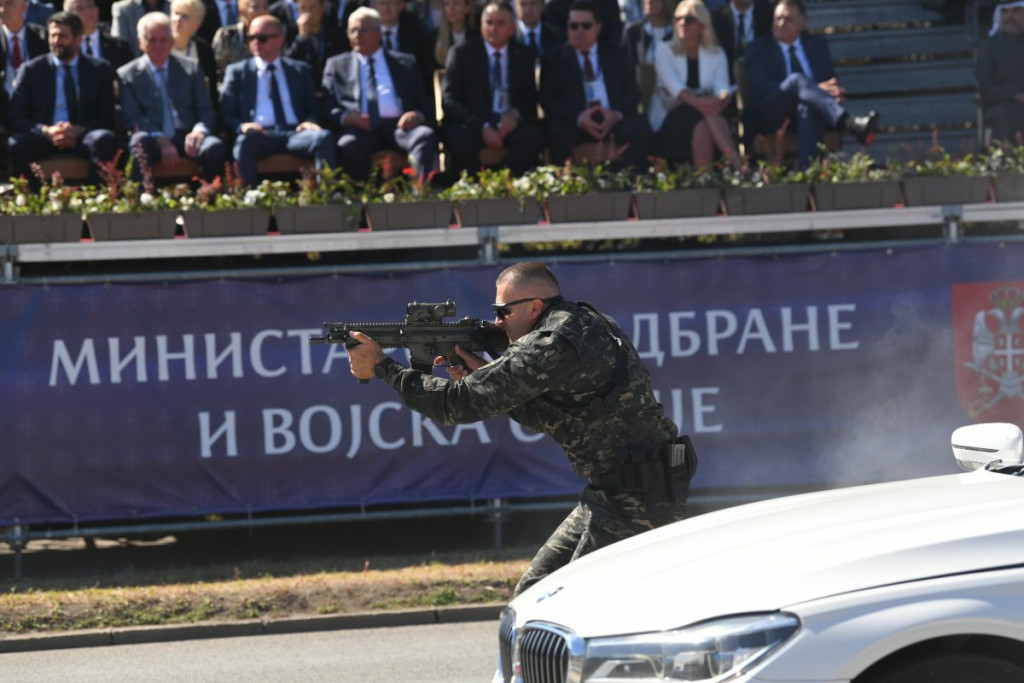 Vojnoj paradi prisustvovali su predsednik Ujedinjenih Arapskih Emirata, delegacija Kraljevine Bahrein, prestolonaslednik Dubaija, predsednici skupština i vlada Srbije i Srpske, srpski član Predsedništva Bosne i Hercegovine, ministri u vladama Srbije i Srpske, članovi Skupštine Crne Gore, zamenik premijera Republike Severne Makedonije, ministar odbrane Mađarske, načelnik Generalštaba OS Republike Azerbejdžan, načelnik Zajedničkog štaba OS Bosne i Hercegovine, načelnik štaba vazduhoplovstva i svemira OS Republike Francuske, komandant Nacionalne Garde Ohaja, članovi kolegijuma ministra odbrane i načelnika Generalštaba, predstavnici diplomatskog i vojno-diplomatskog kora. Međutim, na sve to je standardno zažmurio Tonino Picula, izvestilac Evropskog parlamenta za Srbiju.