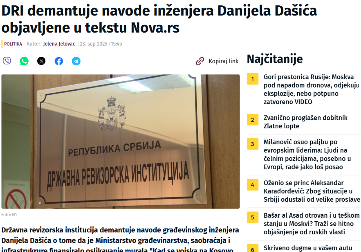 "Nova" je nakon nekog vremena objavila i demanti Državne revizorske institucije kojim je i zvanično stavljena tačka na najnoviji pokušaj spinovanja u režiji tog medija.