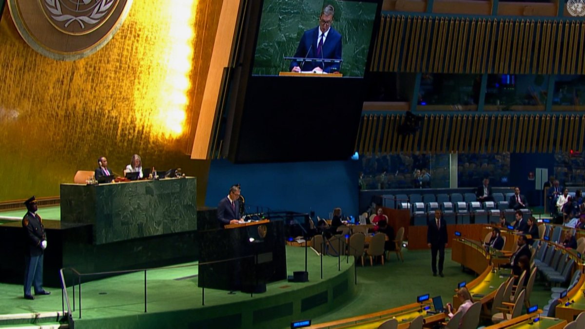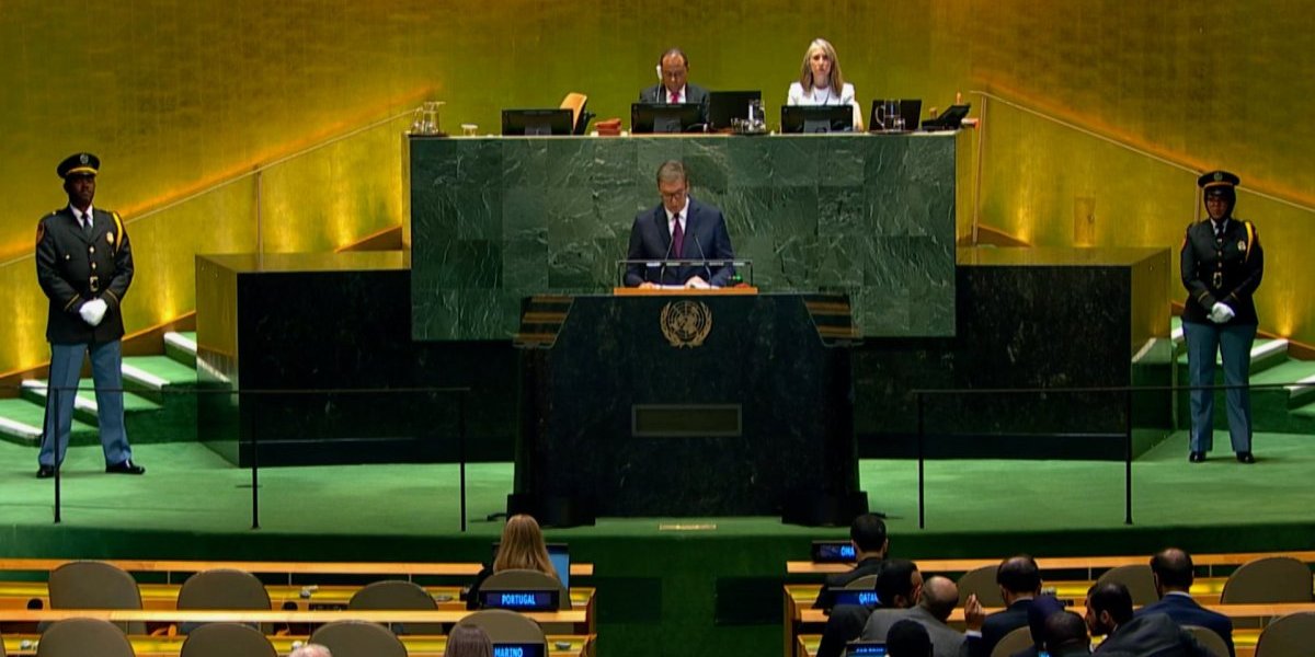 Predsednik Srbije Aleksandar Vučić obratio se večeras na 80. zasedanju Generalne skupštine Ujedinjenih nacija u Njujorku, gde je istakao posvećenost Srbije očuvanju mira, stabilnosti i bezbednosti svog naroda.
