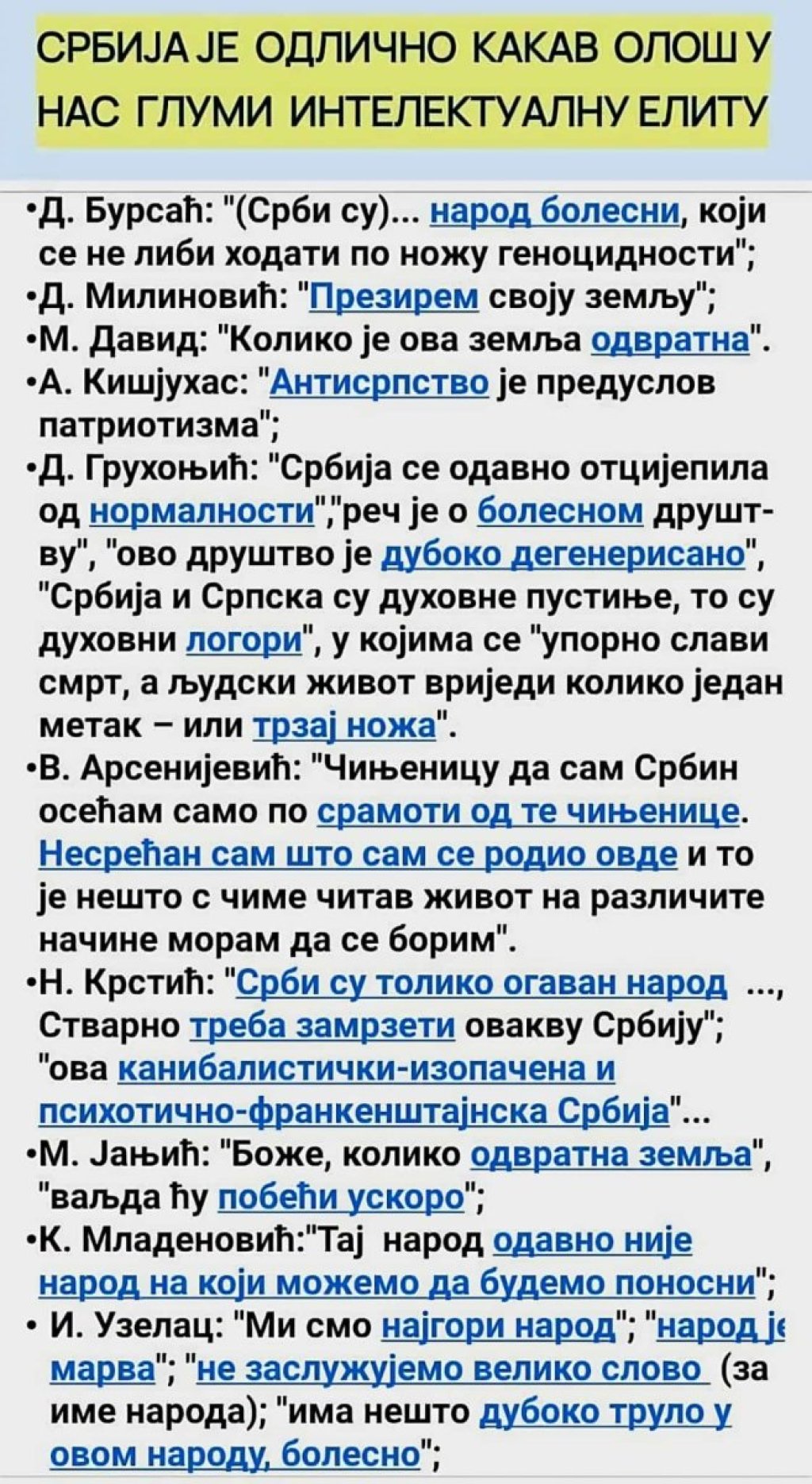 Pa kad im ne valja Srbija i narod u Srbiji što ne odu iz Srbije.?Zato što nigdje ne bi mogli biti neko osim u Srbiji gdje misle da su NEKO a ustvari su NITKO. Bolje rečeno NITKOVI