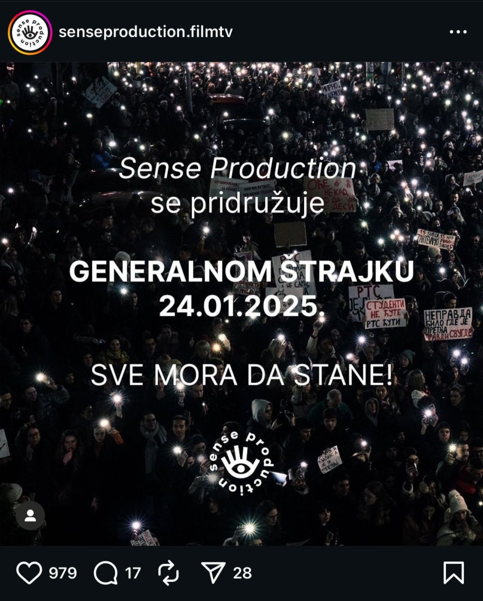 Takođe, produkcija "Sense Production", početkom godine pridružila se štrajku koji su organizovali blokaderi, u nameri da oslabe državu i da sve stane, ali im to nije pošlo za rukom.