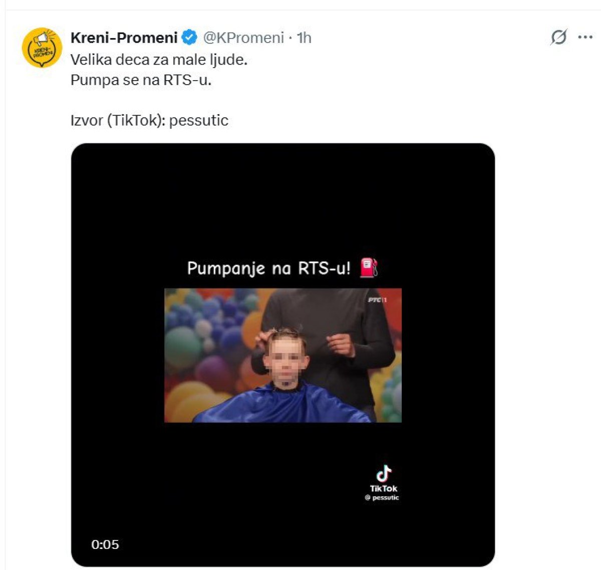 Na RTS-u su na sraman način, u emisiji "Važne stvari", korišćena deca na neprimeren način, ali tu nije kraj. Bolesni korisnici društvene mreže "Iks" dele pozitivne objave na ovaj jeziv čin RTS-a.