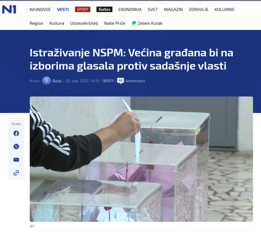 Tako je, primera radi, N1 objavio tekst pod naslovom "Istraživanje NSPM: Većina građana bi na izborima glasala protiv sadašnje vlasti", dok su u samom tekstu preneti glavni nalazi navodnog istraživanja.