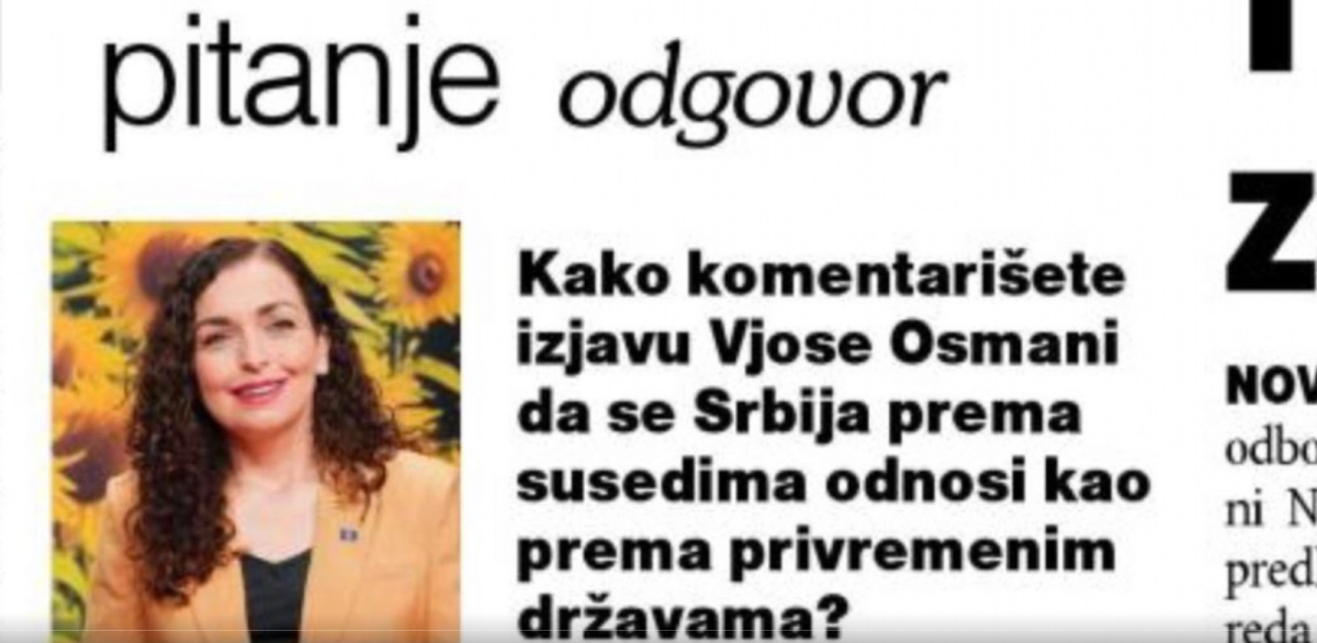 U ovam blokaderskom pamfletu objavili su "pitanje" koje glasi: "Kako komentarišete izjavu Vjose Osmani da se Srbija prema susedima odnosi kao prema privremenim državama."