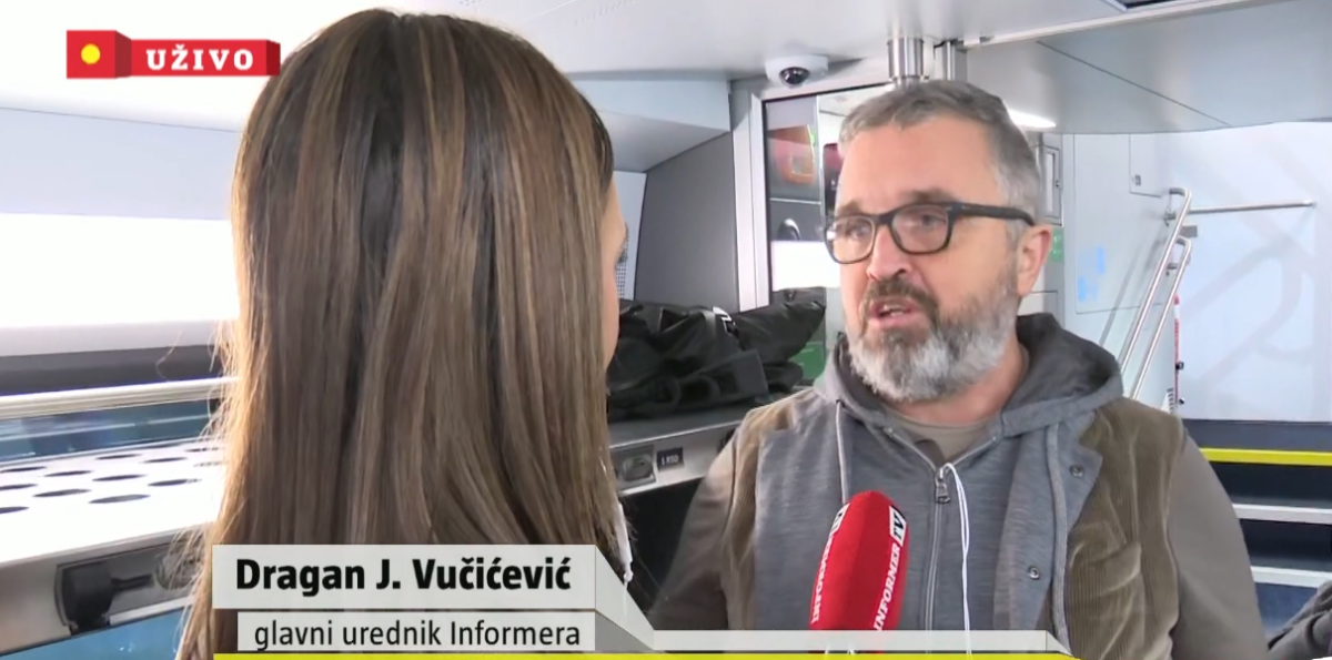Glavni urednik Informera Dragan J. Vučićević i reporterka Milica Škorić nalaze se u vozu koji će krenuti ka Subotici.