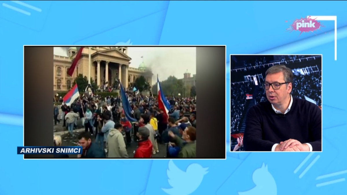 Na početku emisije, predsednik Vučić je upitan o 5. oktobru, a on je odgovorio da će biti kratak.