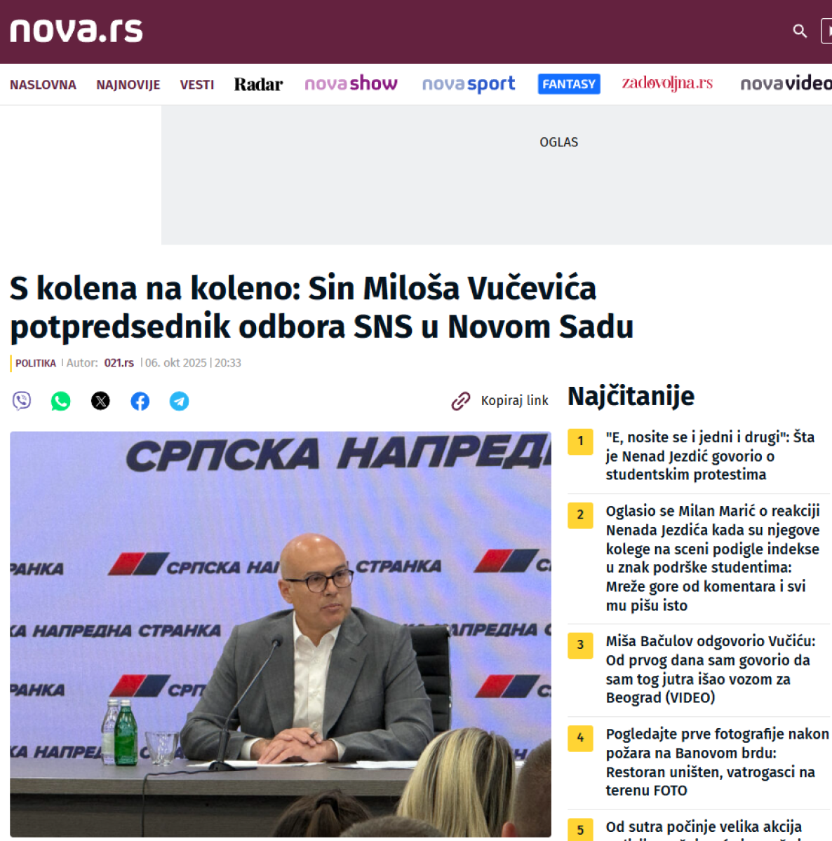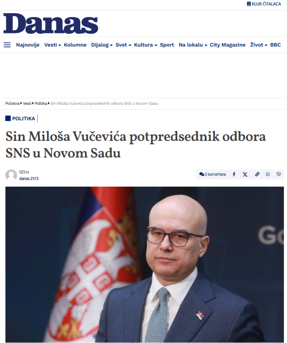 Mihailo Vučević izabran je potpredsednika Gradskog odbora SNS-a u Novom Sadu, nakon čega su se na njega ostrvili tajkunski Danas, N1 i Nova S.