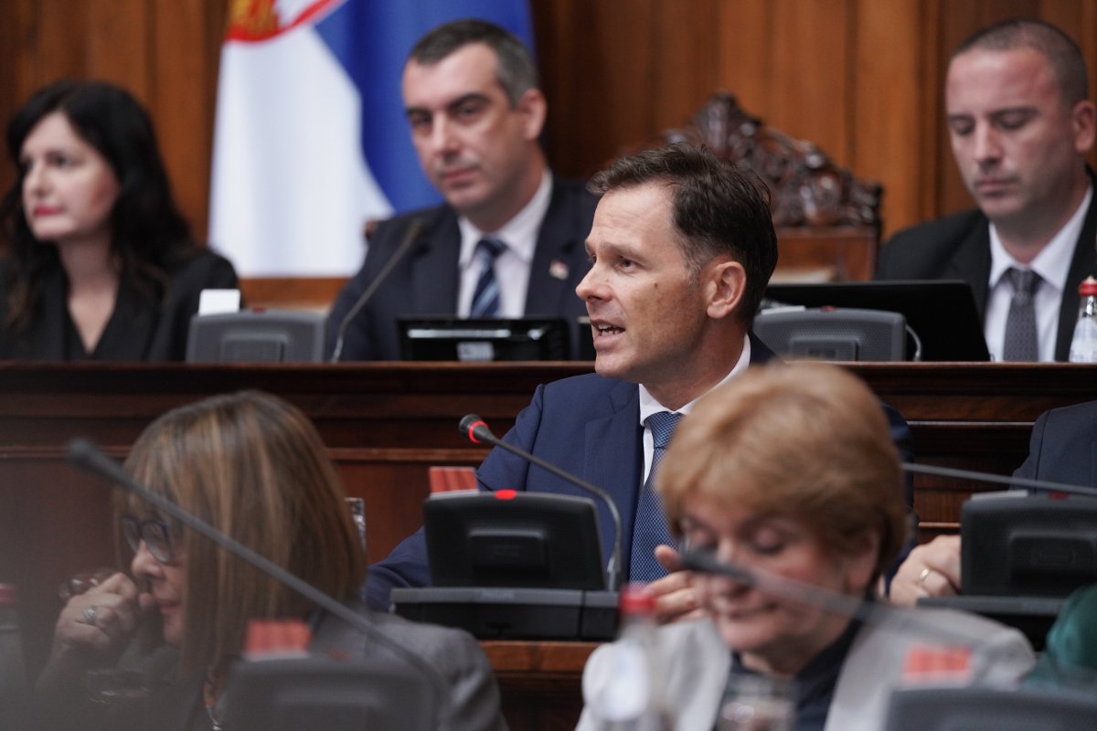 Ministar finansija Siniša Mali izlagao je na prvoj sednici redovnog jesenjeg zasedanja za čiji je dnevni red predloženo 47 tačaka, a kao prva tačka predviđeno je razmatranje Predloga zakona o posebnim uslovima za evidentiranje i upis prava na nepokretnostima.