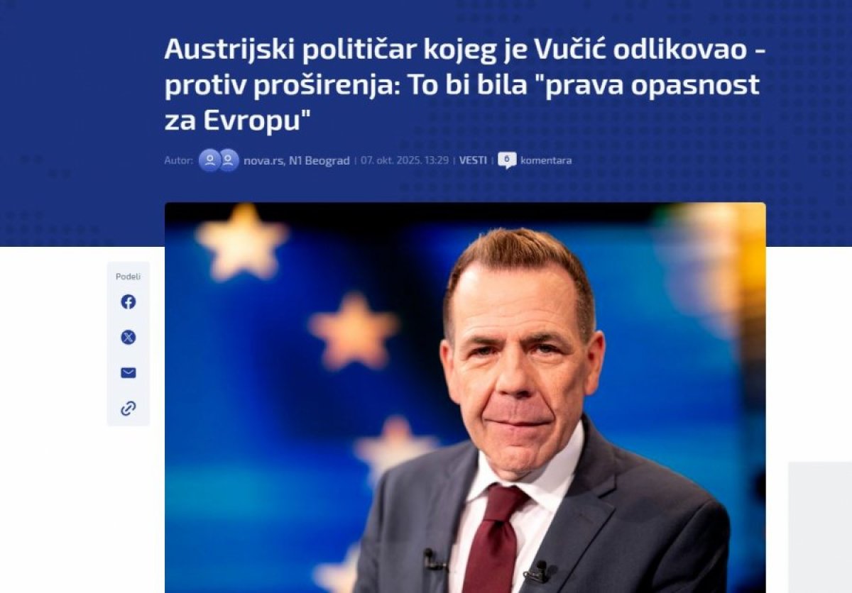 Tajkunski portal N1 objavio je tekst pod naslovom "Austrijski političar kojeg je Vučić odlikovao - protiv proširenja: To bi bila "prava opasnost za Evropu", pokušali su da na perfidan način kreiraju narativ da je Vilimski protiv prijema Srbije u EU.