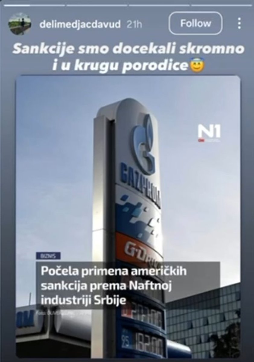 Delimeđac, poznat po izrazito antisrpskim izjavama, sada je na društvenim mrežama napisao da se raduje američkim sankcijama uvedenim NIS-u.