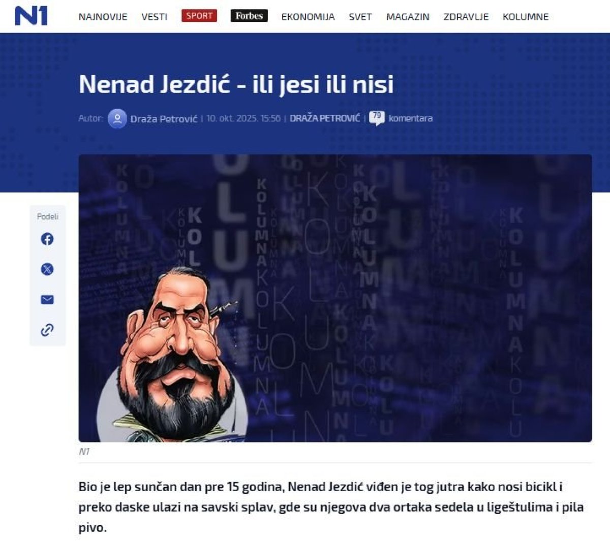 Dragoljub Draža Petrović, novinar i kolumnista, a u stvari samo običan kerber tajkuna Dragana Šolaka, koji mu služi da napada sve oni koji se usude da govore ili urade nešto protiv njihove blokaderske ideologije, u najnovijem spisaniju za tajkunsku N1 se ostrvio, a na koga drugog, nego na glumačku veličinu Nenada Jezdića.