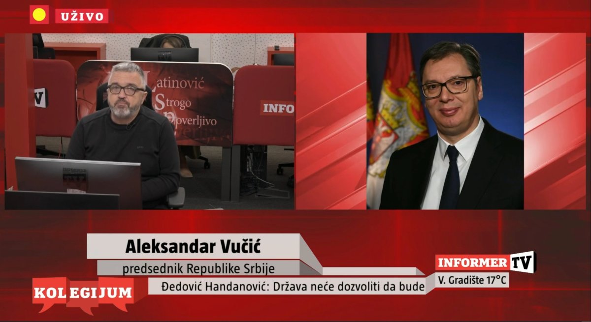 Predsednik Srbije Aleksandar Vučić je tokom gostovanja u Kolegijumu Informer TV komentarisao zastrašujuće napade na njega, posebno one koje se tiču afere "Satrajevo safari".