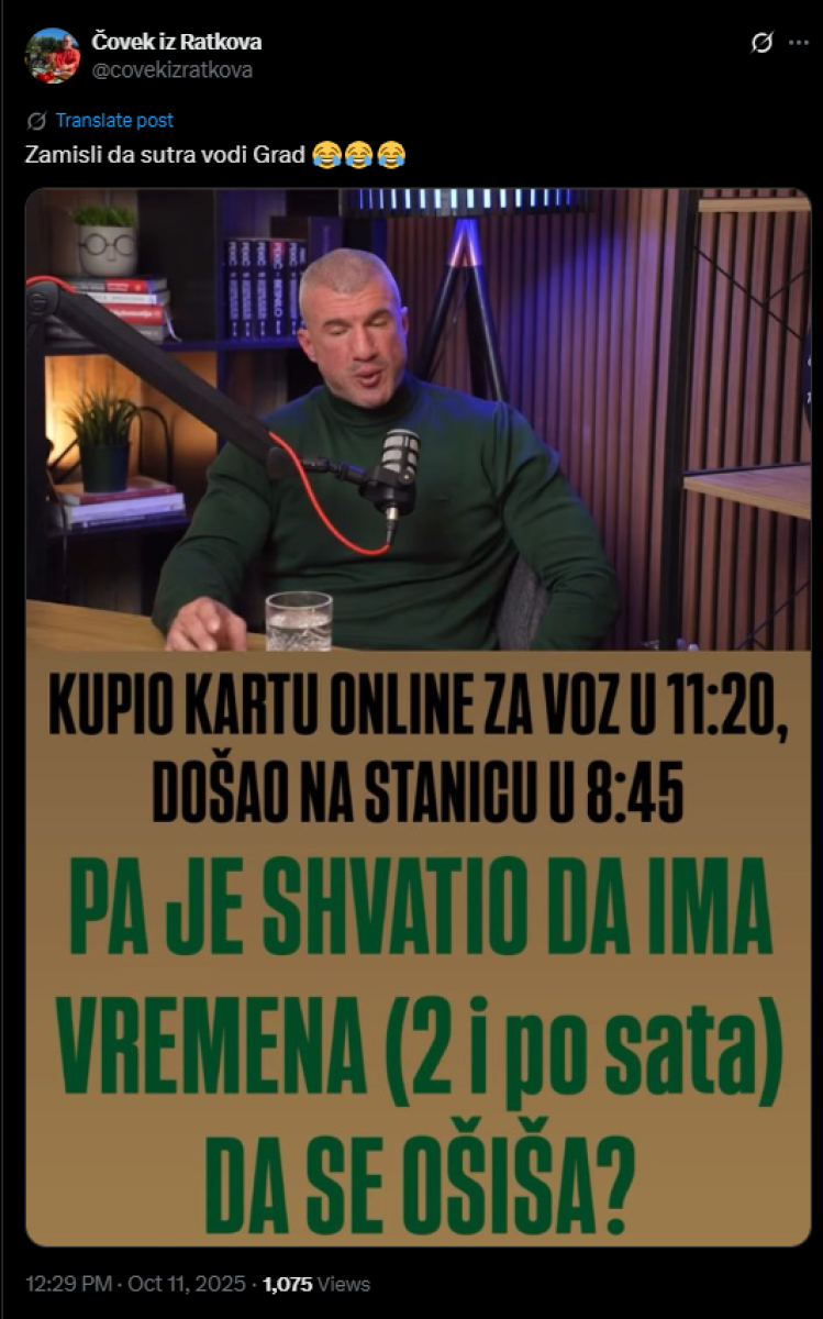 On je objavio fotografiju na kojoj se navodi da je Bačulov na internetu kupio kartu za voz koji za Beograd kreće u 11.20, na stanicu došao u 8.45 (Bačulov to ne negira), a onda shvatio da ima vremena da se ošiša u međuvremenu.