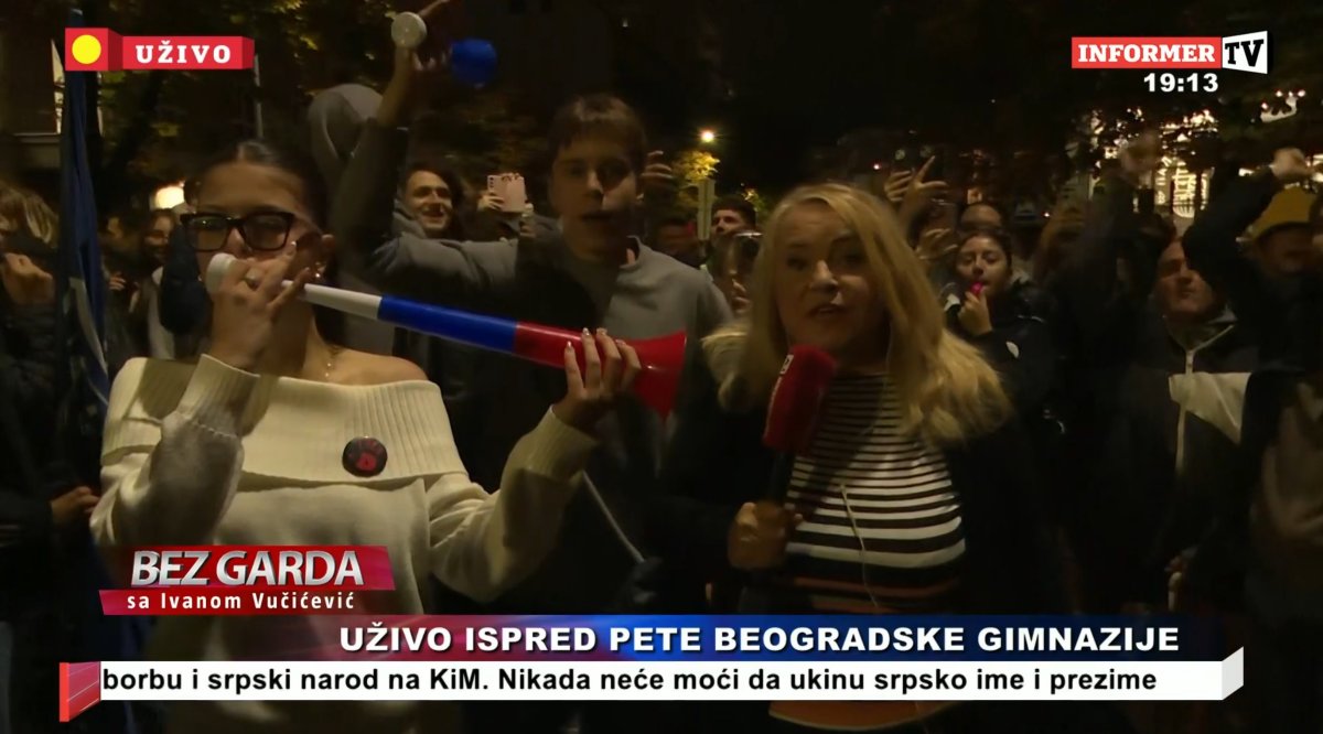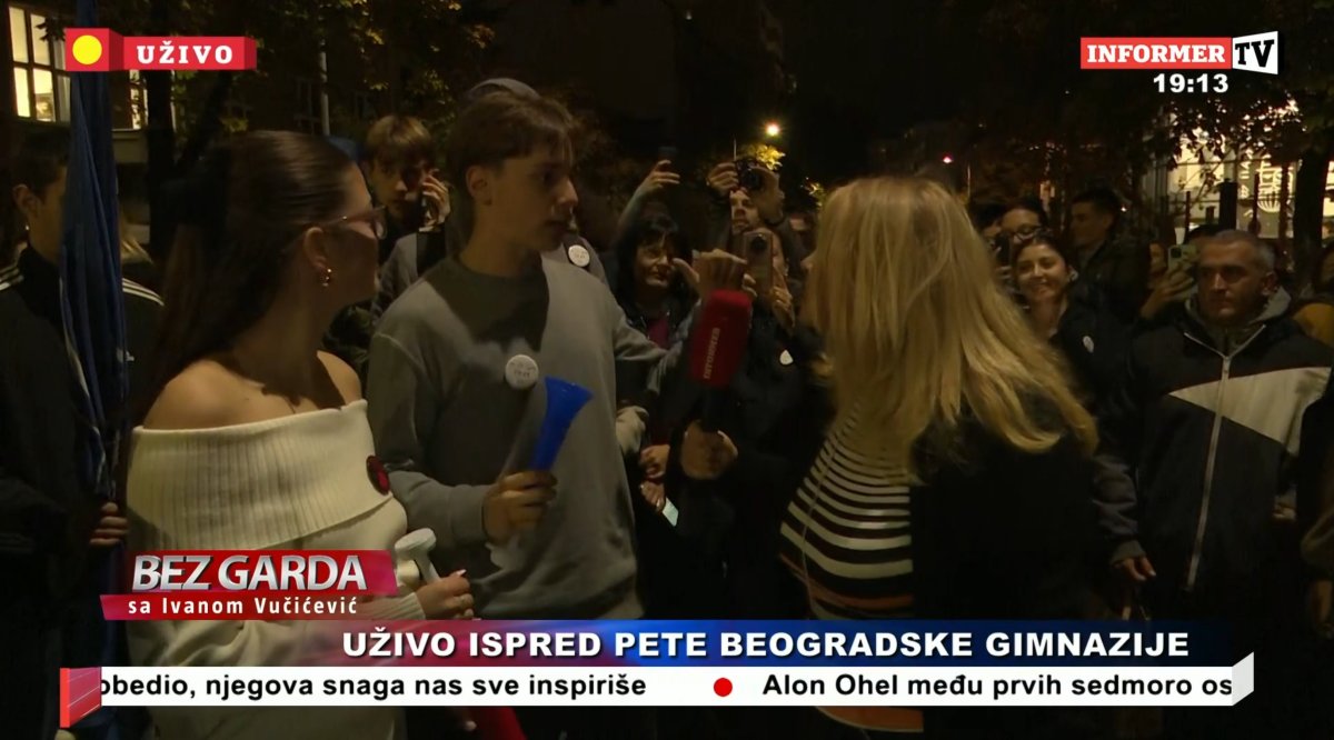 Kako naša reporterka Branka Lazić izveštava sa lica mesta ispred Pete gimnazije, u toku je fizička blokada Pete gimnazije. Učenici se neće pomeriti dok se ne ispune njihovi zahtevi, što je apsurdno.
