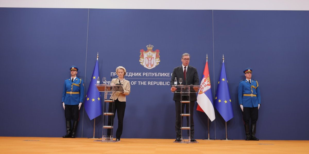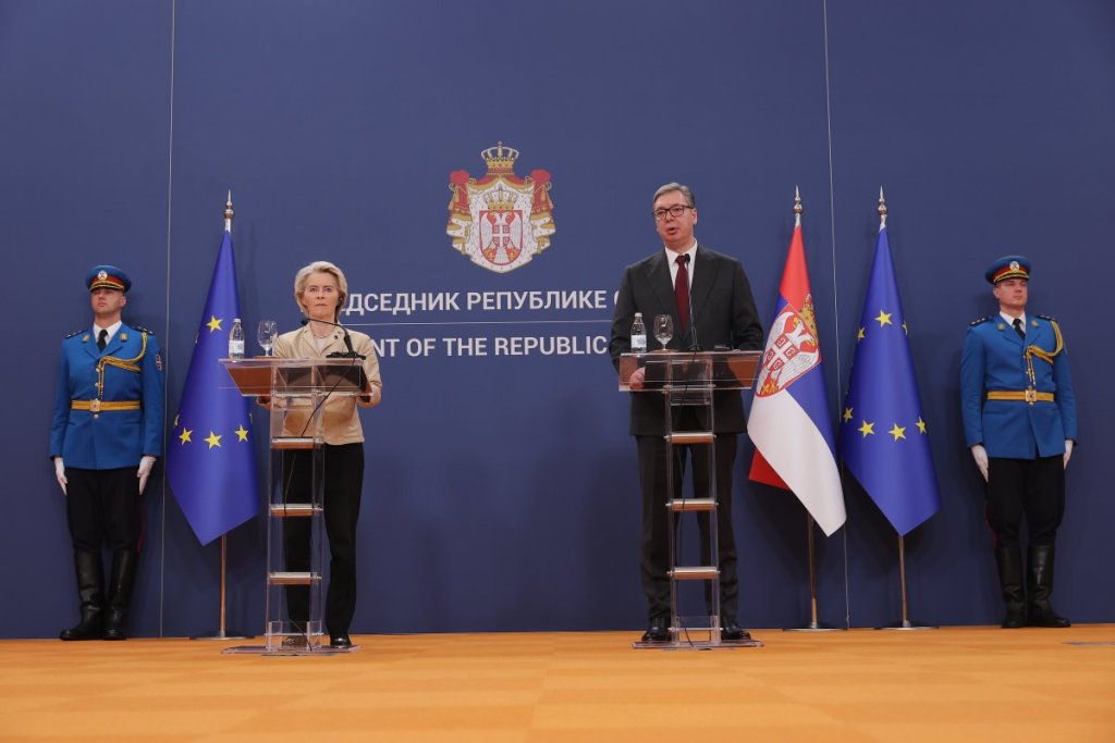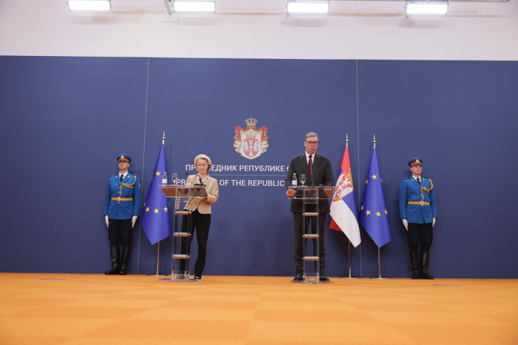 - Hvala vam na otvorenom i iskrenom razgovoru koji smo vodili danas. Vrlo dobro znate kakav je stav EU, naš stav podrazumeva slobodu, a ne represiju, uključujuči pravo na mirno okupljanje, takođe zalažemo se za partnerstvo, a ne potčinjvanje, i za diplomatiju umesto agresije. Pre skoro dve decenije Srbija je napravila izbor da se pridruži EU, to je bio izbor od srca, želja naroda i mi očekujemo da Srbija duplo brže krene svojim putem ka EU. Mi povezujemo Srbiju sa energetskim tržištem EU i to je prava garancija da će srpske porodice biti sigurne i da će im biti toplo preko zime - izjavila je Ursula.