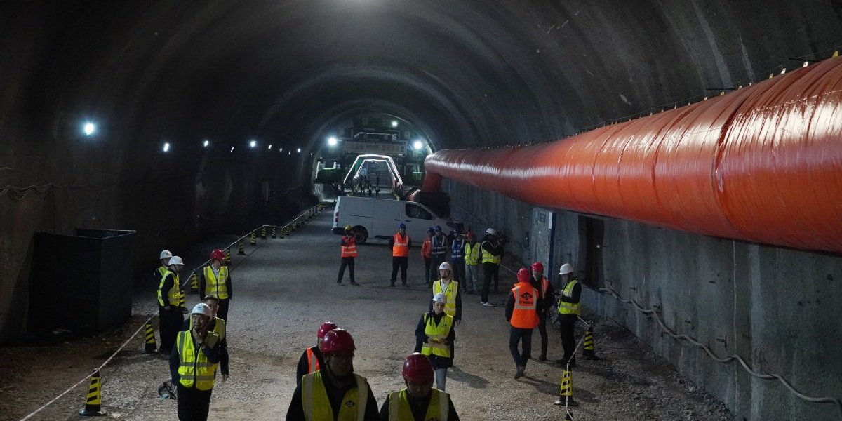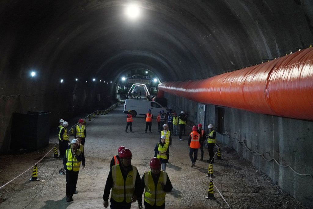 Na početku današnjeg obilaska radovima na tunelu predsednika su izvestili da je ostalo još 1,3 metra najduže cevi tunela da se probije.