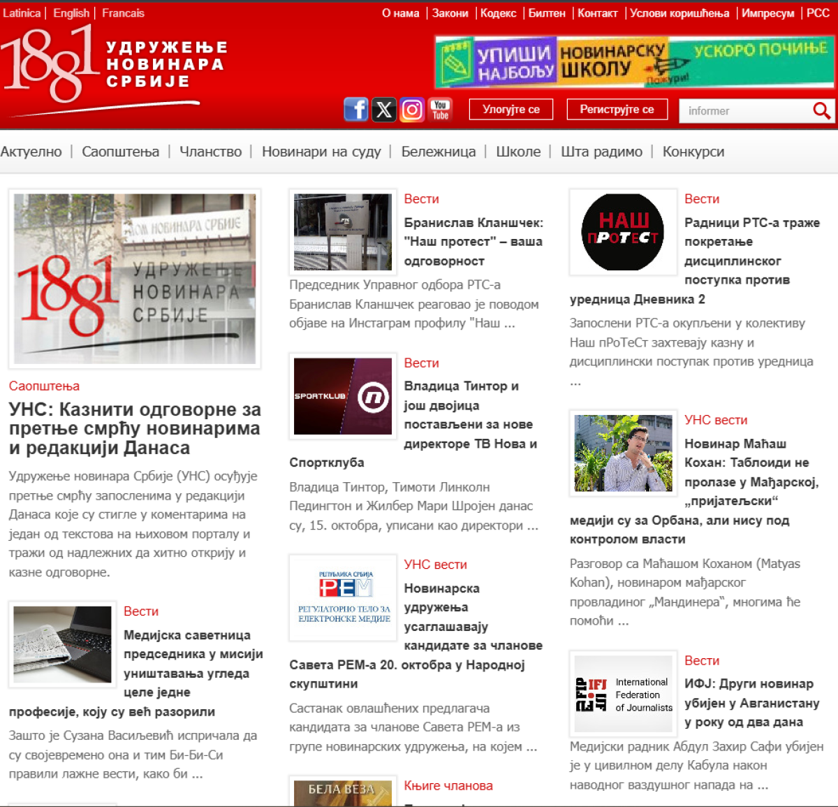 Za UNS su nedopustive pretnje koje dobijaju u redakciji Danas, gde im neko poručuje da želi da im se "zatre seme", ali nije sporno kad se Informeru poruči: "Treba srušiti tu zgradu. Mnogo je ružna. Ionako ničemu ne služi.", "...U Dunav, kao prve mačiće...", "Tu televiziju treba zabraniti, a njega i njegove dobro išibati"...