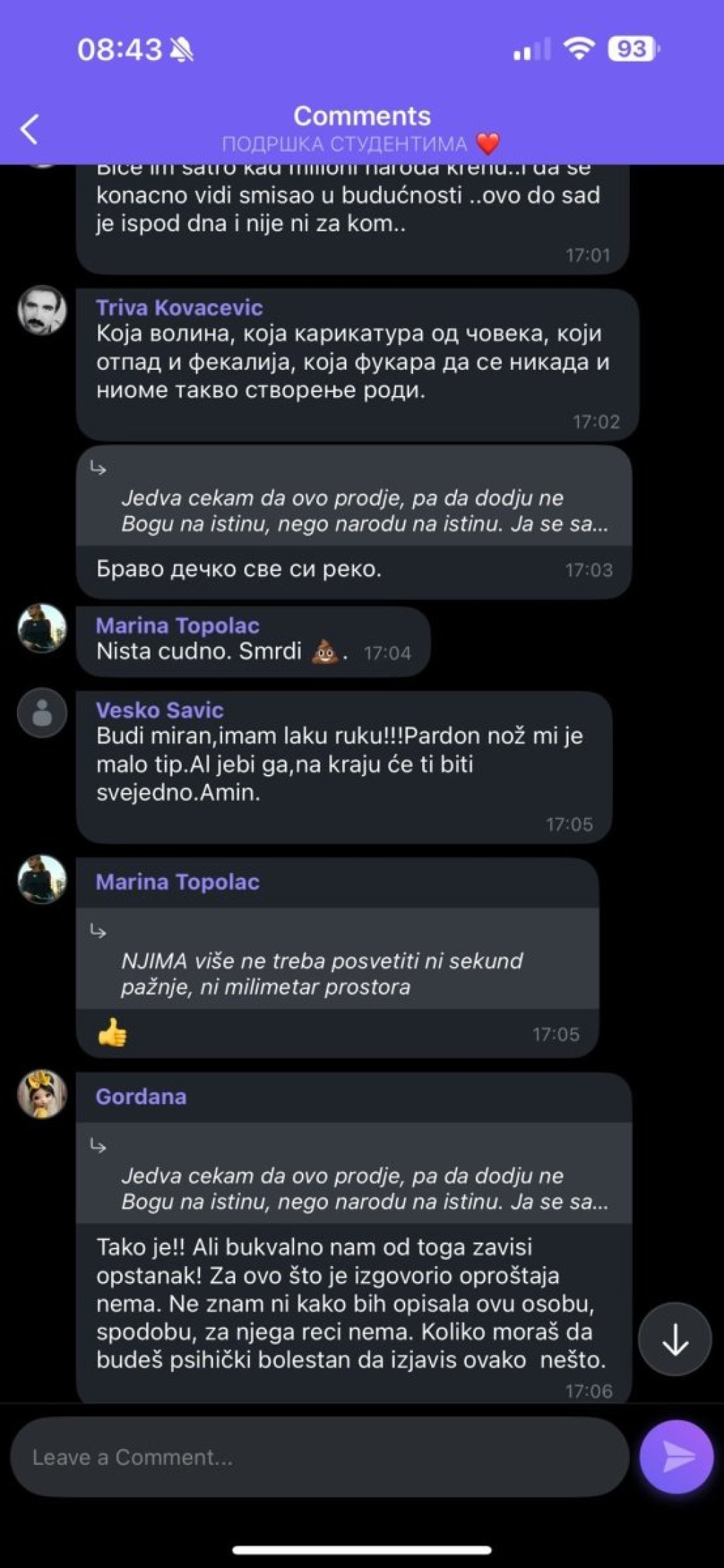 U pitanju su najstrašniji komentari za koje bi se teško moglo poverovati da dolaze od osoba zdravog razuma, budući da se u njima Vučićeviću otvoreno preti hladnim oružjem, ali i na mnoge druge načine.