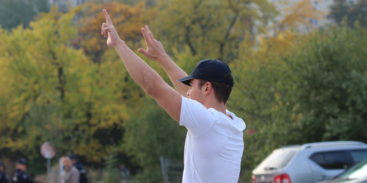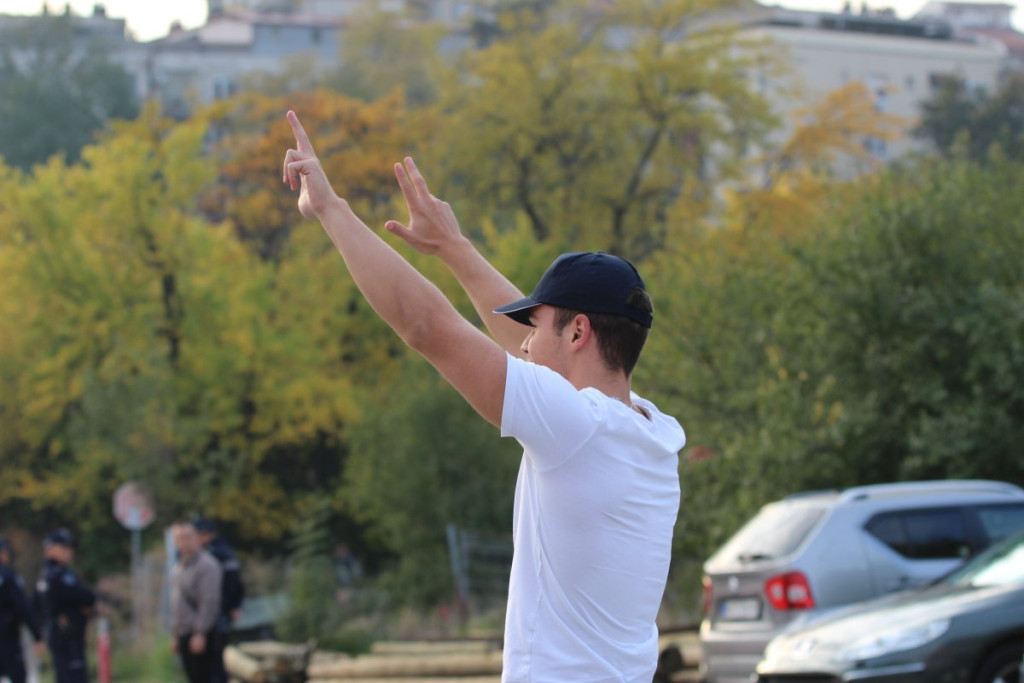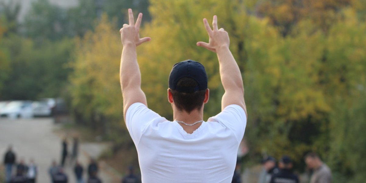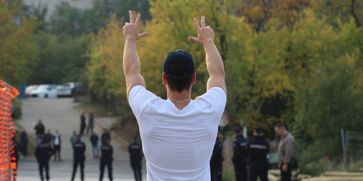 Naime, Vukašin Vučićević, sin glavnog urednika Informera Dragana J. Vučićevića pokazao je "tri prsta" šačici blokadera koja se okuplja ispred zgrade naše redakcije.