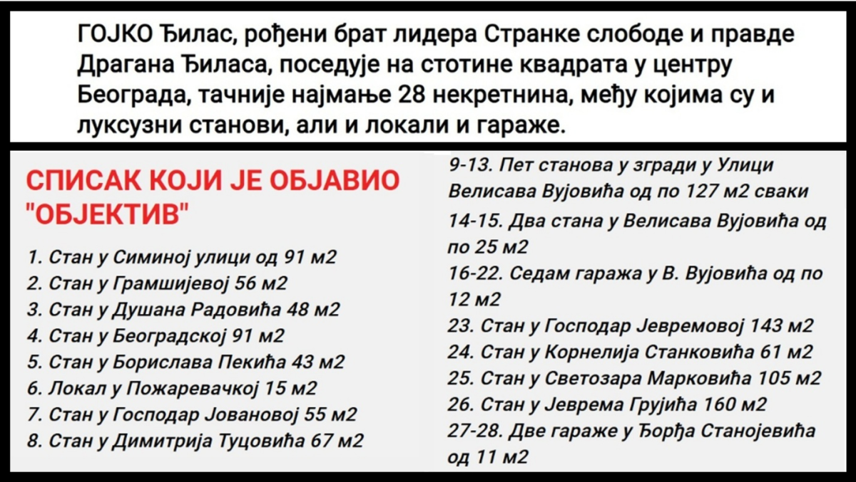 Spisak stanova i lokala Gojka Đilasa, koji su objavili mediji: