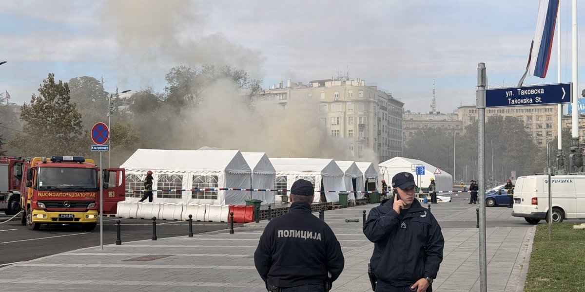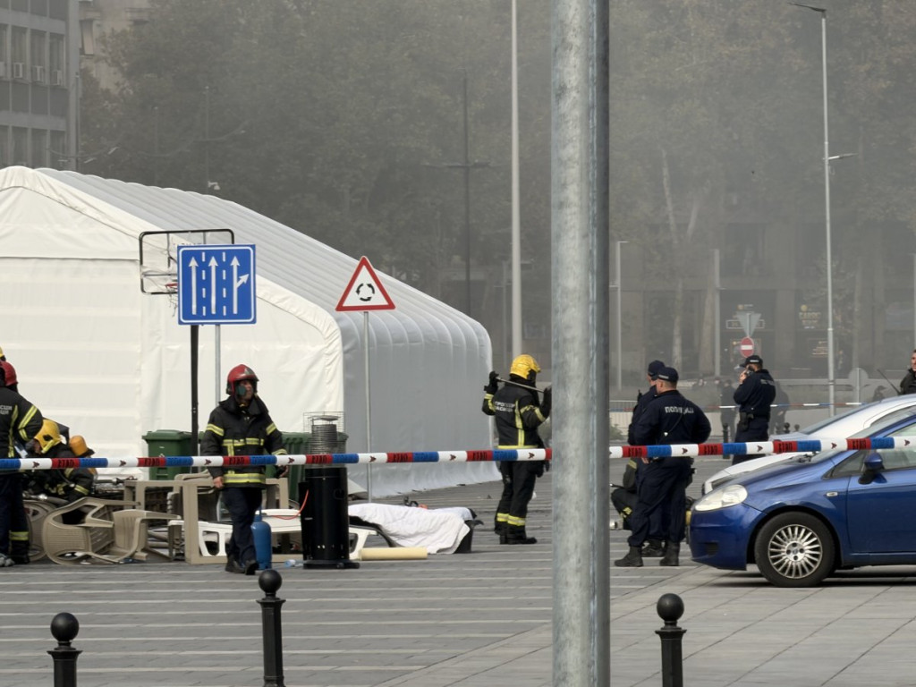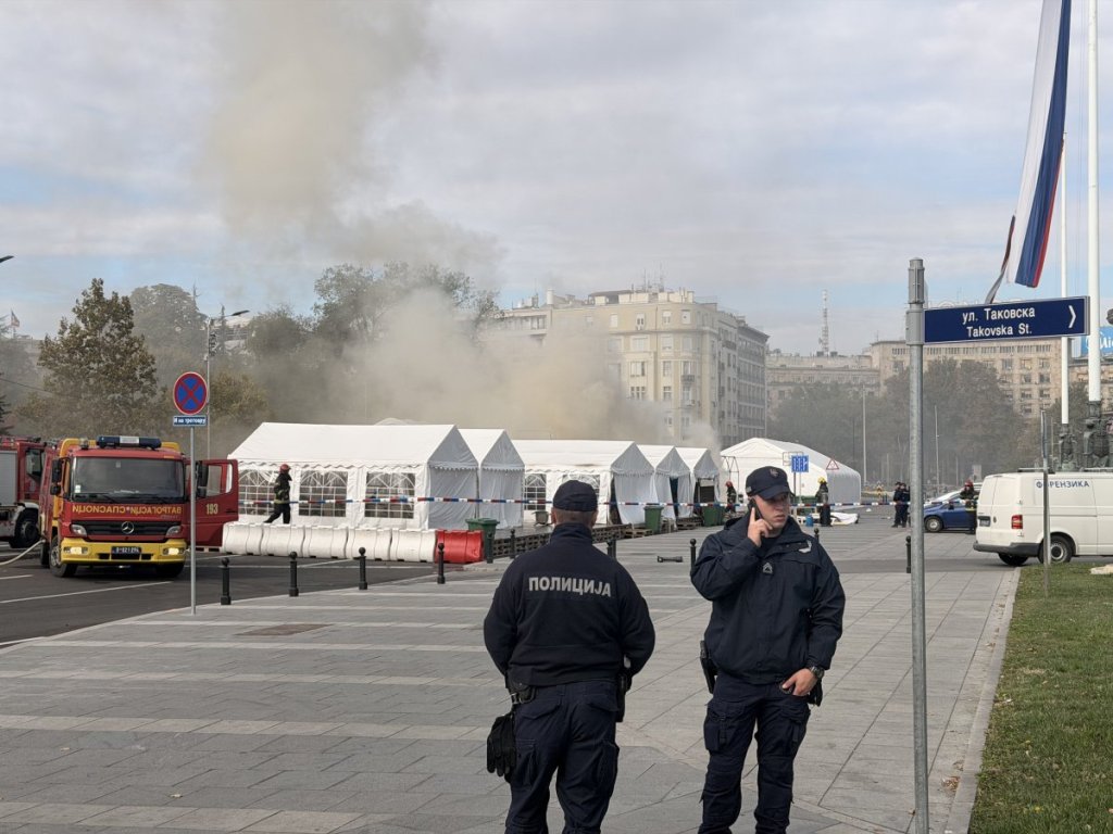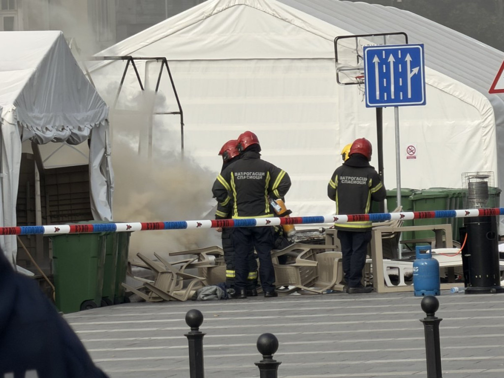 Policija je savladala napadača koji je nakon pucnjave bacio pištolj u jedan od šatora koji je postavljen na platou i zapalio šator.
