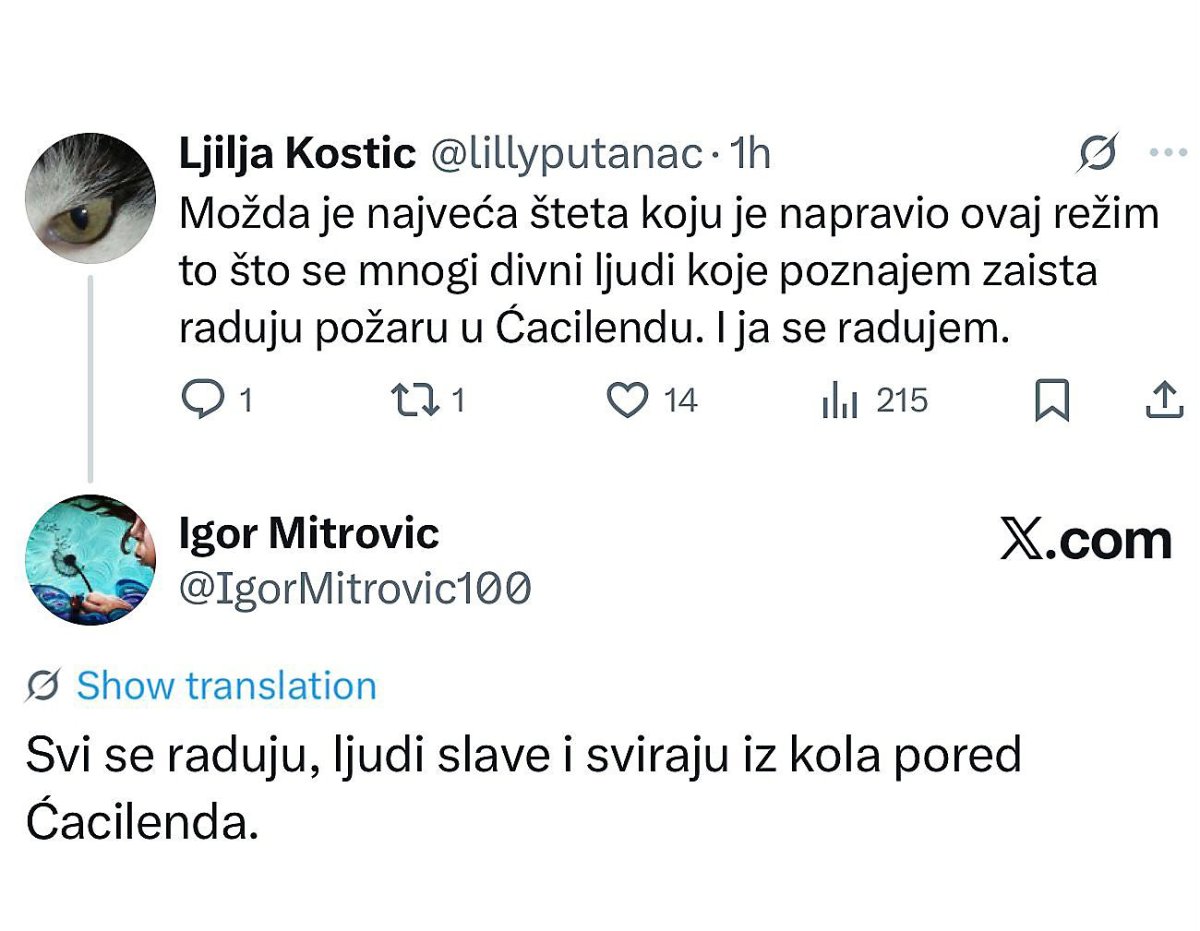 Teroristički napad u Ćacilendu isped zgrade Narodne skupštine Srbije probudio je najdublju mržnju kod blokadera, koji se, verovali ili ne, svemu raduju.