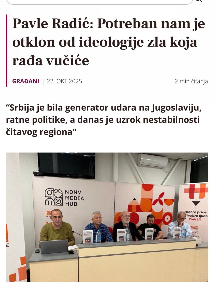 Naime, Pavle Radić, kolumnista separatističkog portala "Autonomija", izjavio je sinoć da se "Srbija još uvek nalazi u kovitlacu zla", uz sramnu tvrdnju da je "naša zemlja bila generator udara na Jugoslaviju, ratne politike i današnje nestabilnosti u regionu".