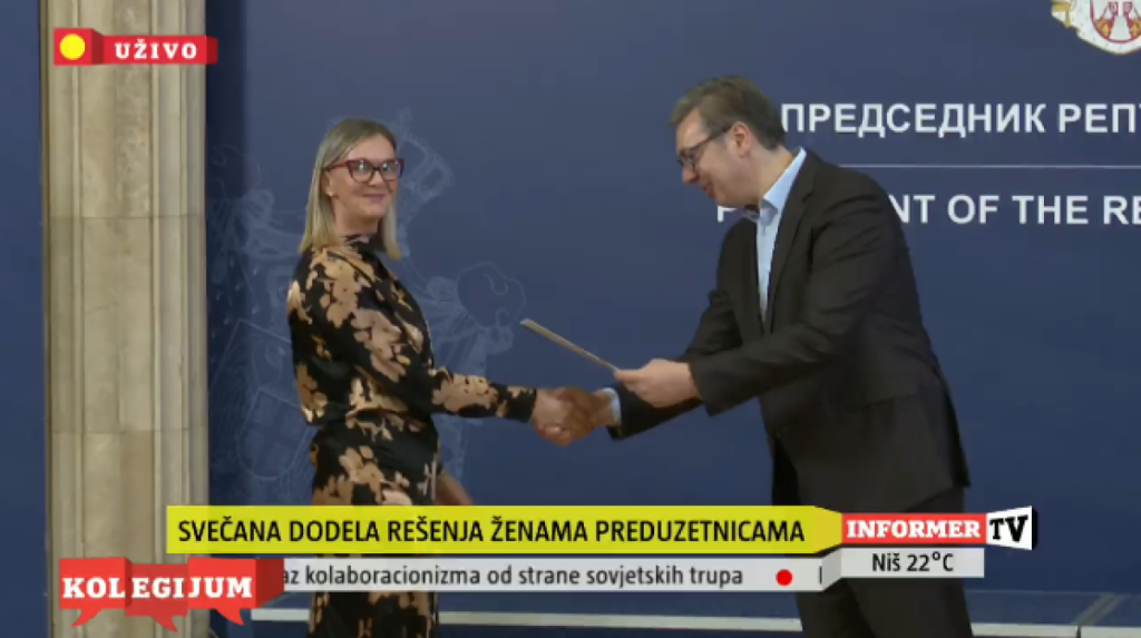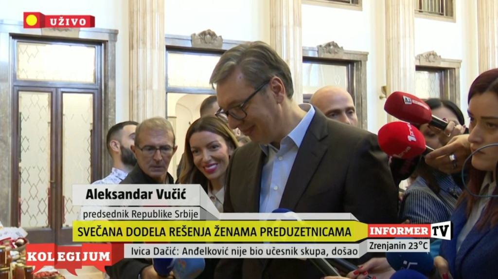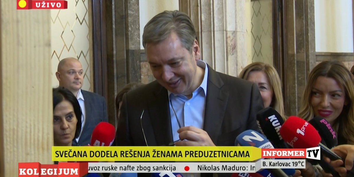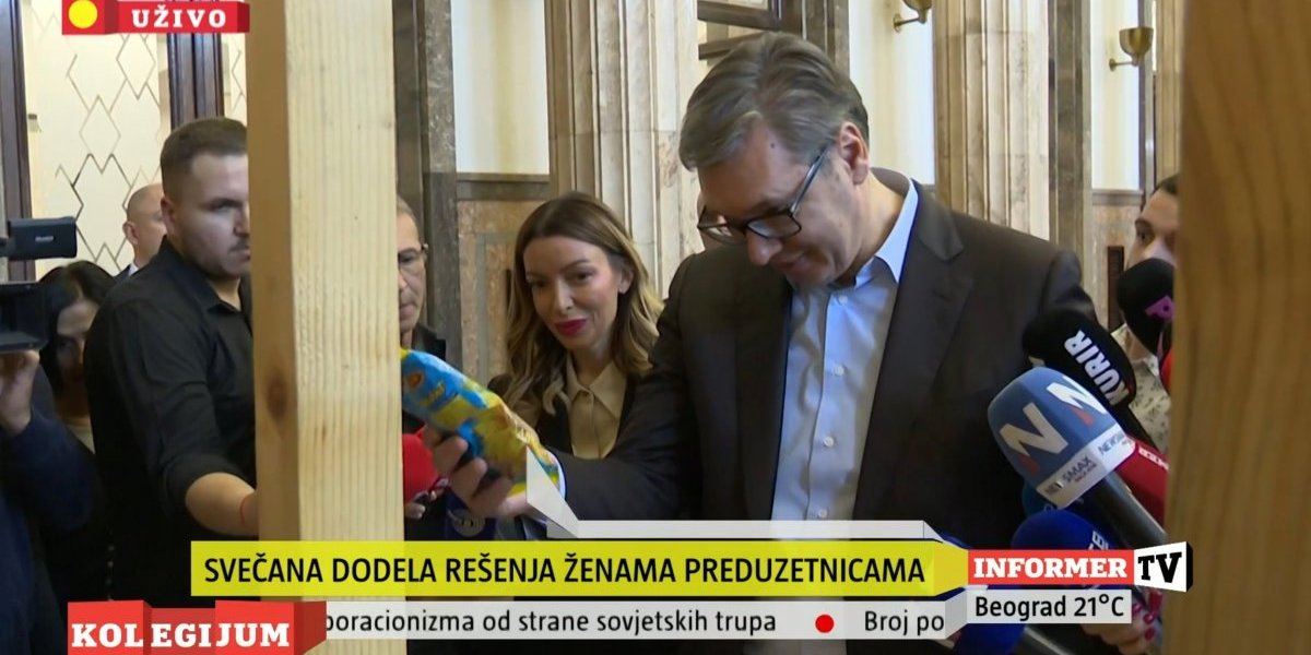 Predsednik Srbije Aleksandar Vučić danas učestvuje na svečanoj dodeli rešenja ženama preduzetnicama dobitnicama sredstava po programu podrške za razvoj preduzetništva žena na selu u 2025. godini.