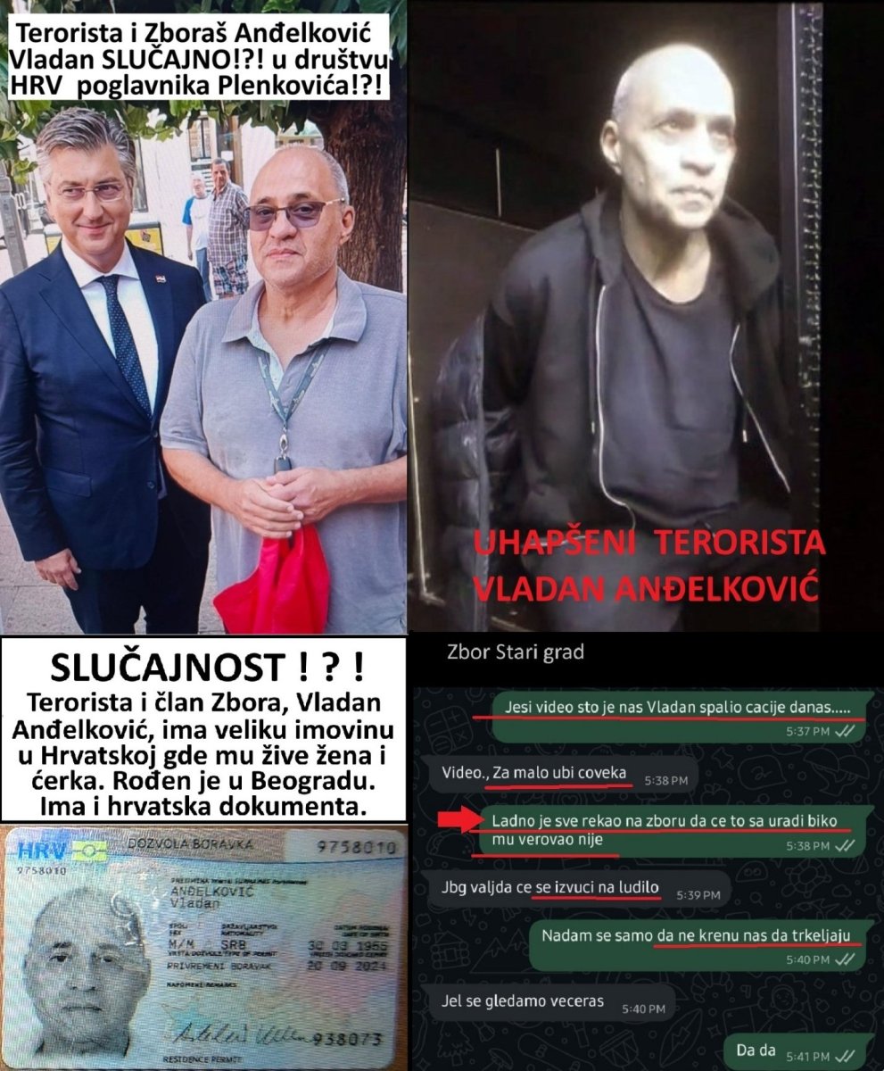 Terorista Vladan Anđelković, poznat i kao „Vlada konjče“ je do 1993. godine radio u Upravi za obezbeđenje, u Državnoj bezbednosti (DB), nekada VI upravi. Posle otpuštanja iz službe, on je stekao značajan imetak, početkom devedesetih godina, kada je otvorio mini-market u ulici Vojislava Ilića. Anđelković poseduje nekretninu u Istri, u Rijeci, i u Crnoj Gori. U Hrvatskoj žive njegova supruga i ćerka. Osim imovine u Hrvatskoj on poseduje i hrvatska dokumenta. Terorista Anđelković je 9. avgusta 2025. godine prešao na teritoriju Republike Hrvatske preko graničnog prelaza Batrovci, a u Republiku Srbiju se vratio 17. oktobra, pet dana pre zločina koji je počinio. Anđelković tokom cele godine ima česte prelaze prema Hrvatskoj (preko Batrovaca i Šida). Anđelković se ovog leta slikao sa predsednikom Vlade Hrvatske Andrejem Plenkovićem. Na društvenim mrežama se pojavio snimak konverzacije članova Zbora Stari grad, koji razgovaraju o tome šta je uradio njihov Vladan, kako ga nazivaju, i o tome kako je Vladan Anđelković, na sastanku Zbora Stari grad, najavio šta će da uradi, ali mu niko nije verovao.