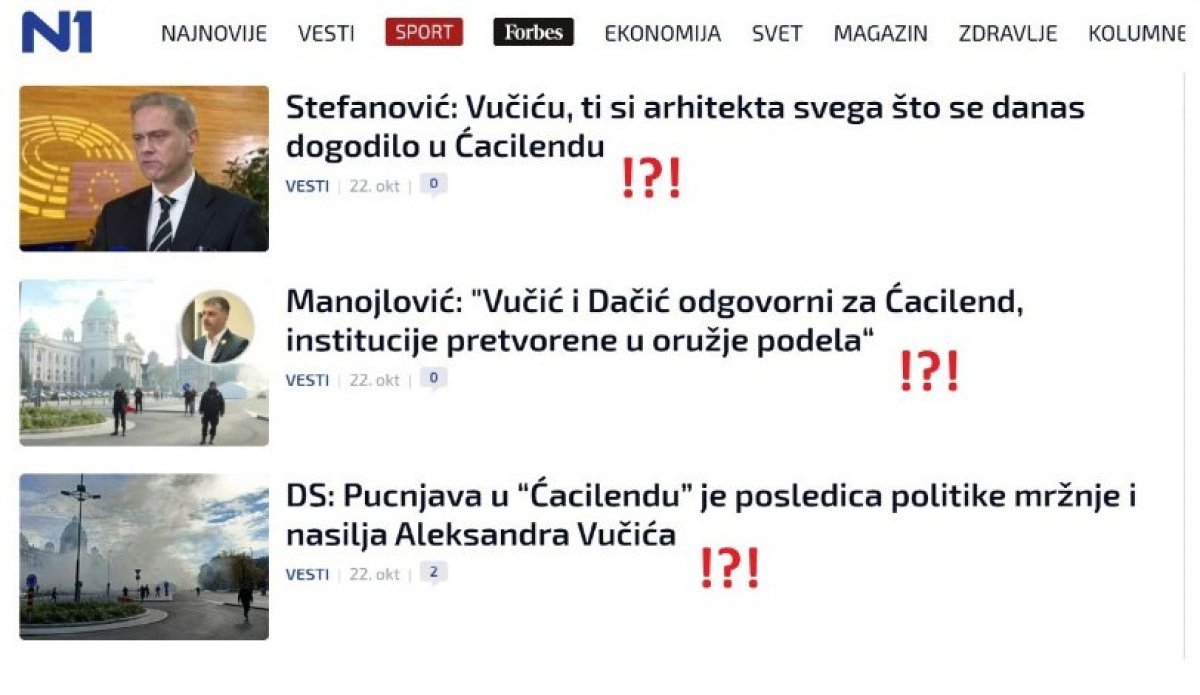 Sajt N1 je 22.10.2025. godine objavio sledeće idiotske naslove: