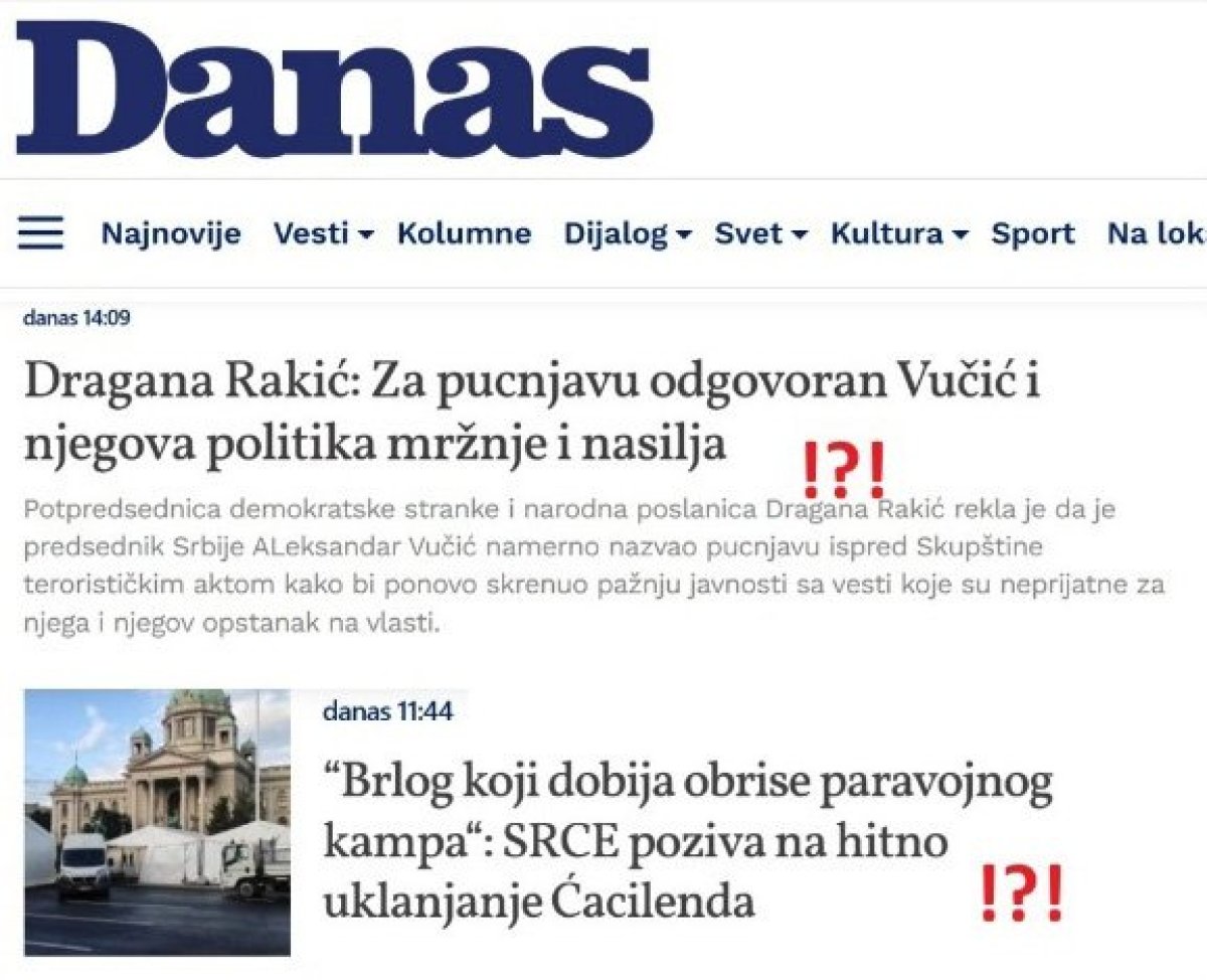 Sajt „Danas“ je 23.10.2025. godine objavio sledeće idiotske naslove: