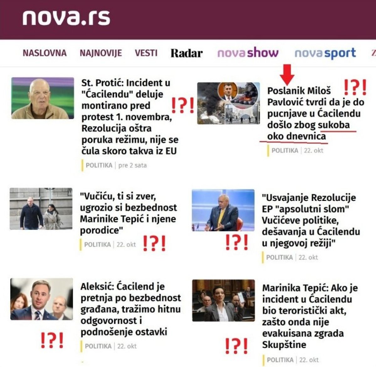 Sajt NovaS je 22. i 23.10.2025. godine objavio sledeće idiotske naslove:
