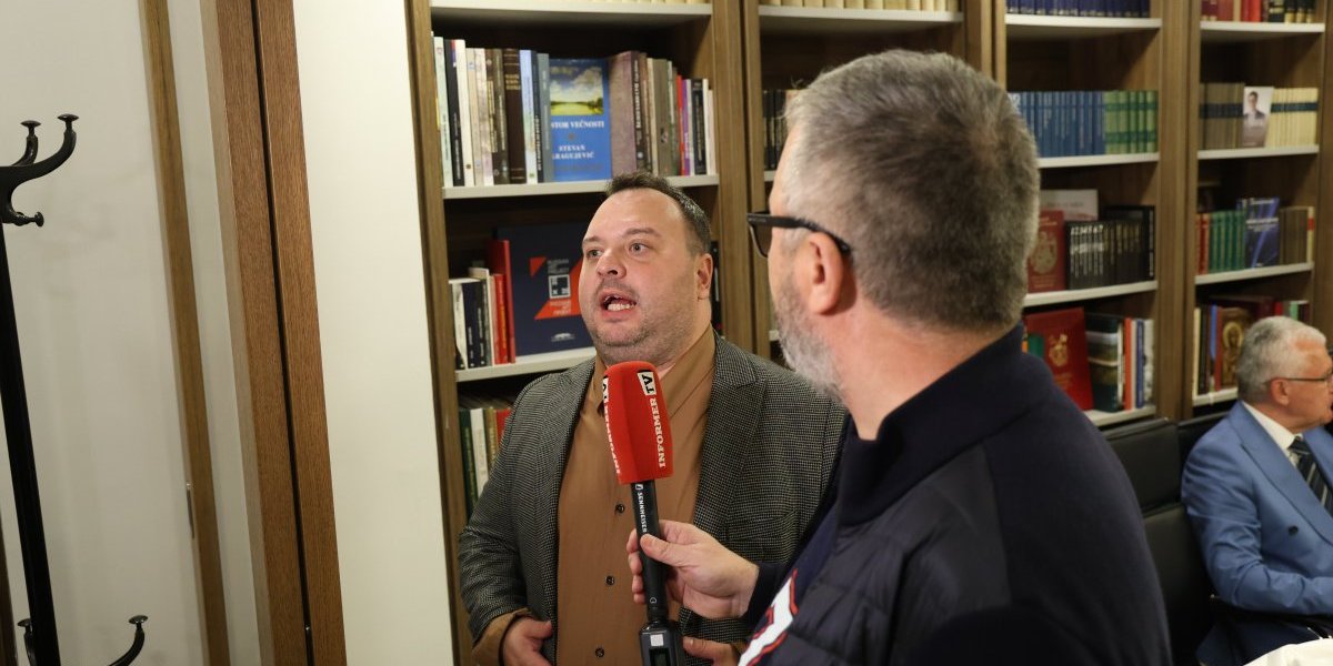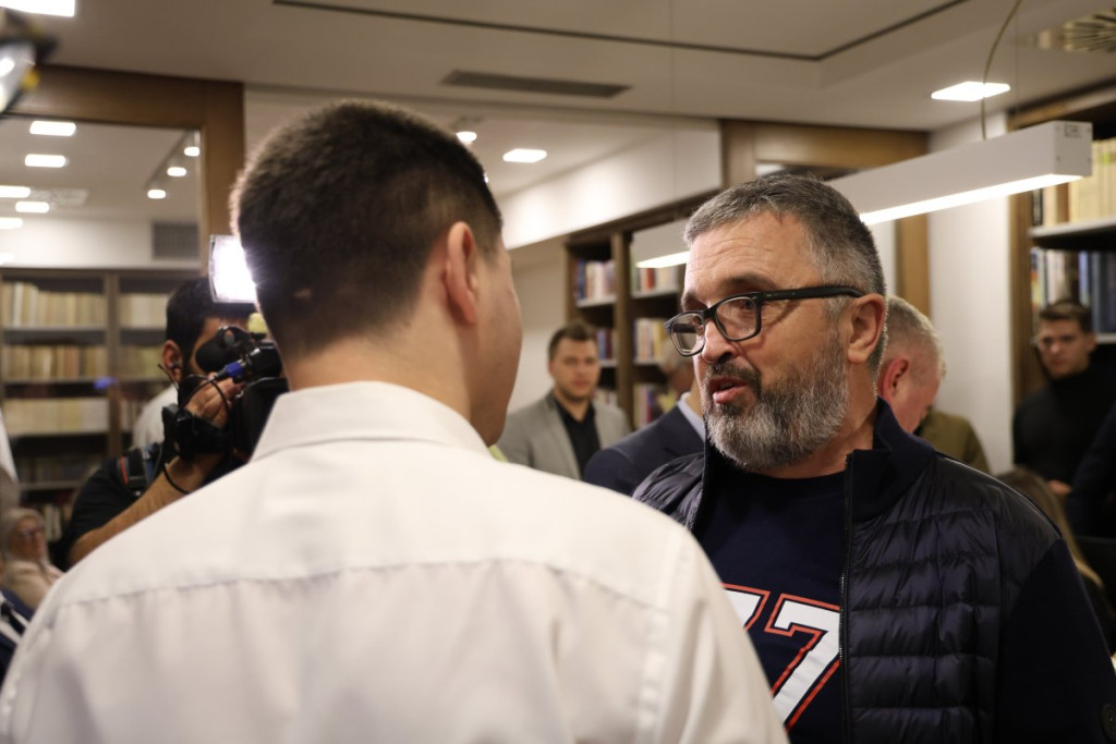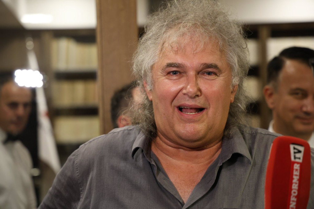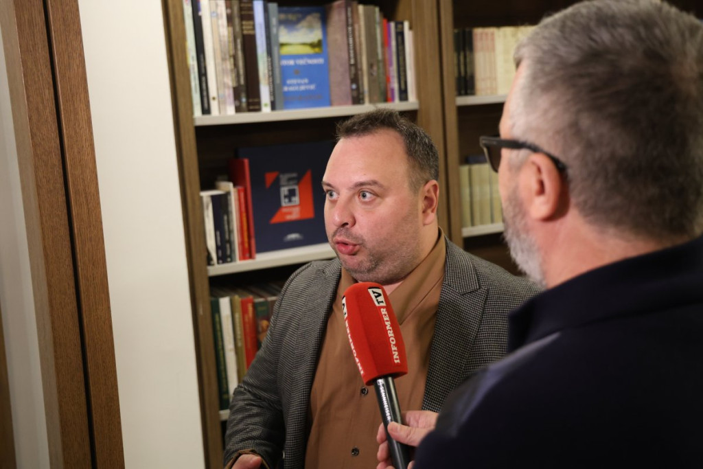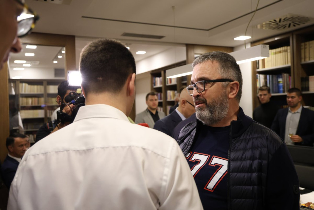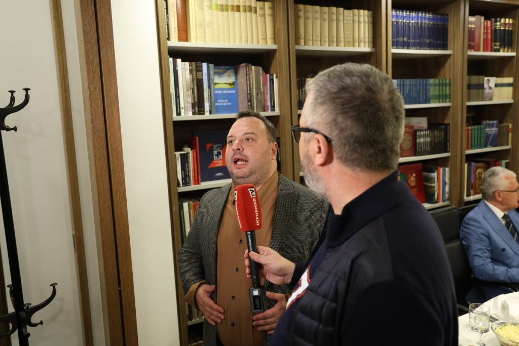 Glavni urednik Informera Dragan J. Vučićević stigao je u prostorije stranke i razgovarao je sa domaćinom slave.