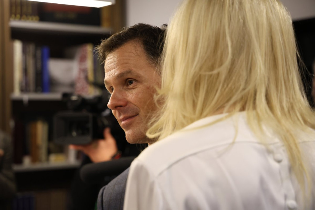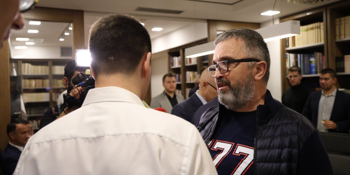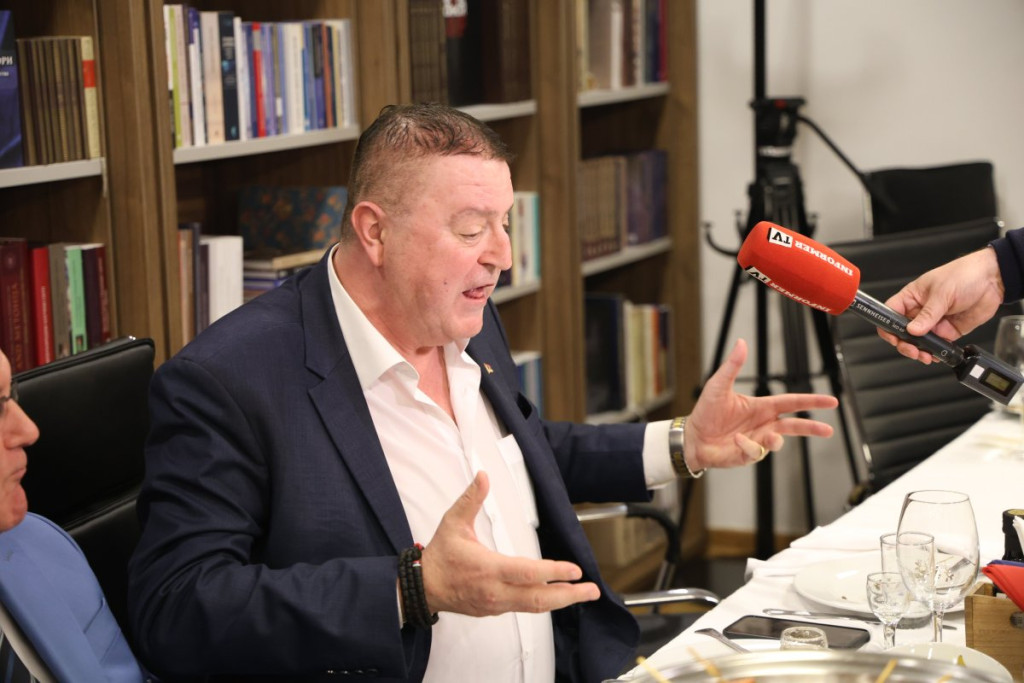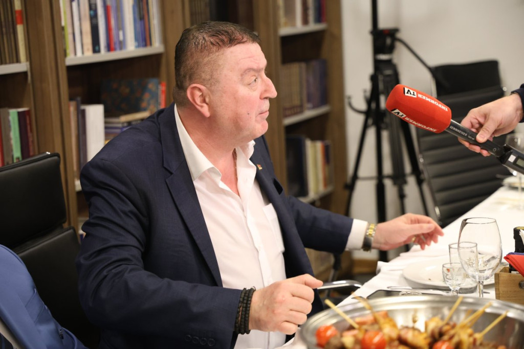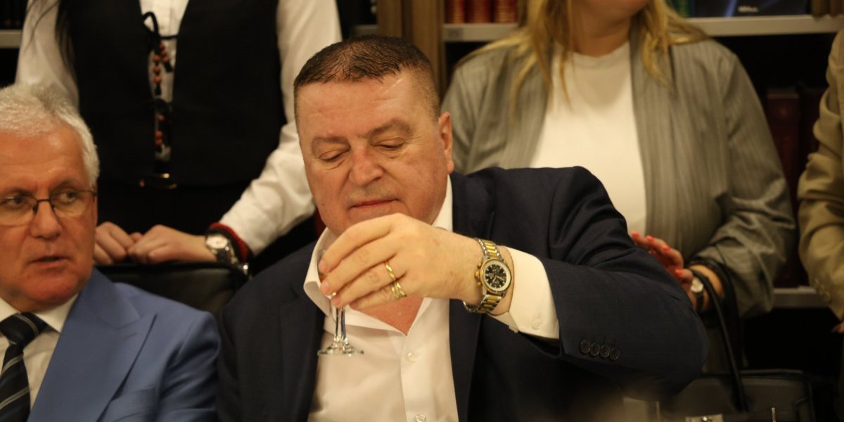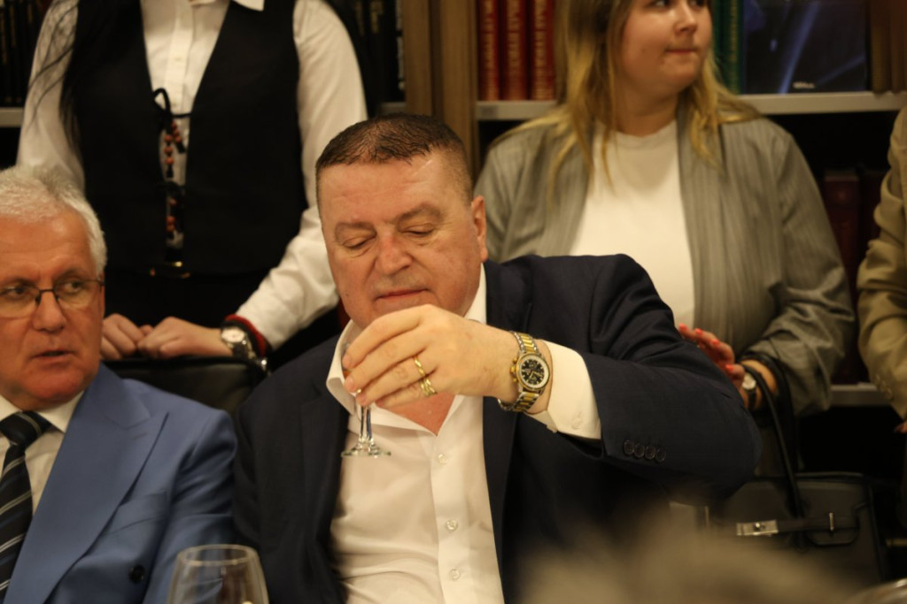 Glavni urednik Informera Dragan J. Vučićević stigao je u prostorije stranke i razgovarao je sa domaćinom slave.