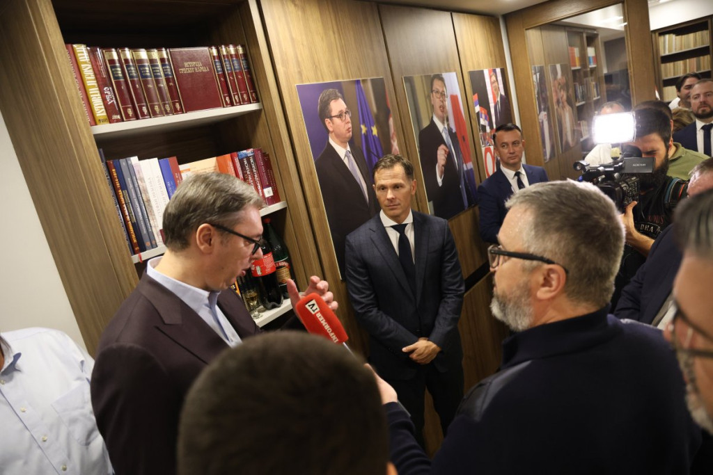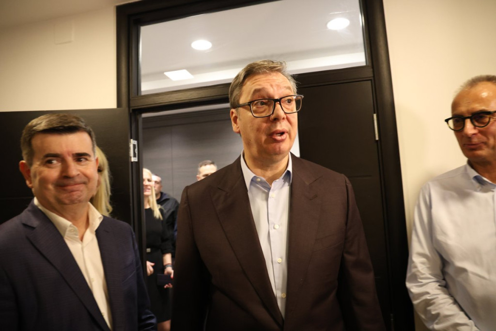 Posle lomljenja kolača u prostorije SNS stigao je i predsednik Aleksandar Vučić.