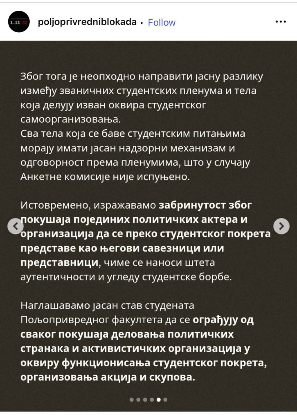 Plenumaši sa Poljoprivrednog fakulteta u Beogradu i Visoke škole elektrotehnike i računarstva (VIŠER) udarili su na sve u opoziciji i to posebno na opozicionare Srđana Milivojevića i Sava Manojlovića, ali i na takozvanu Anketnu komisiju.