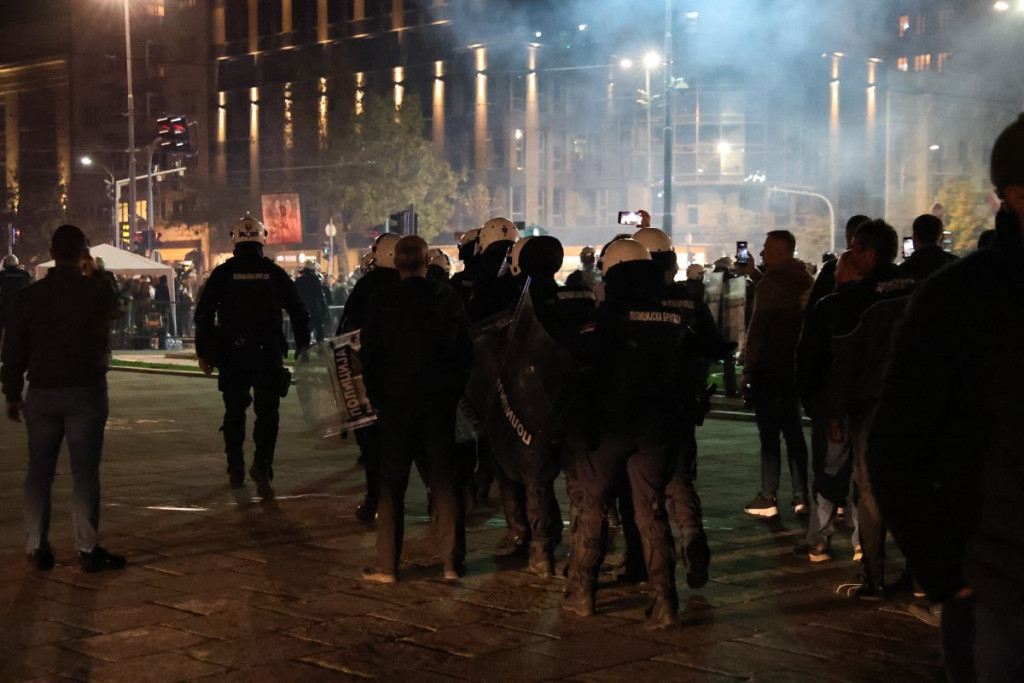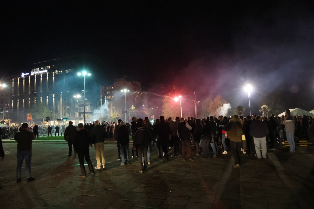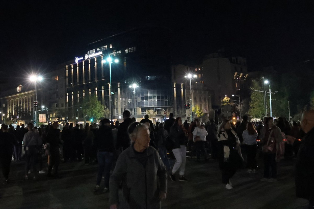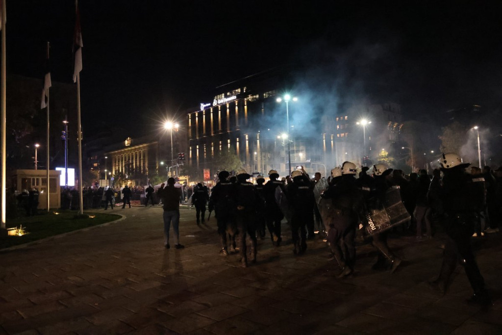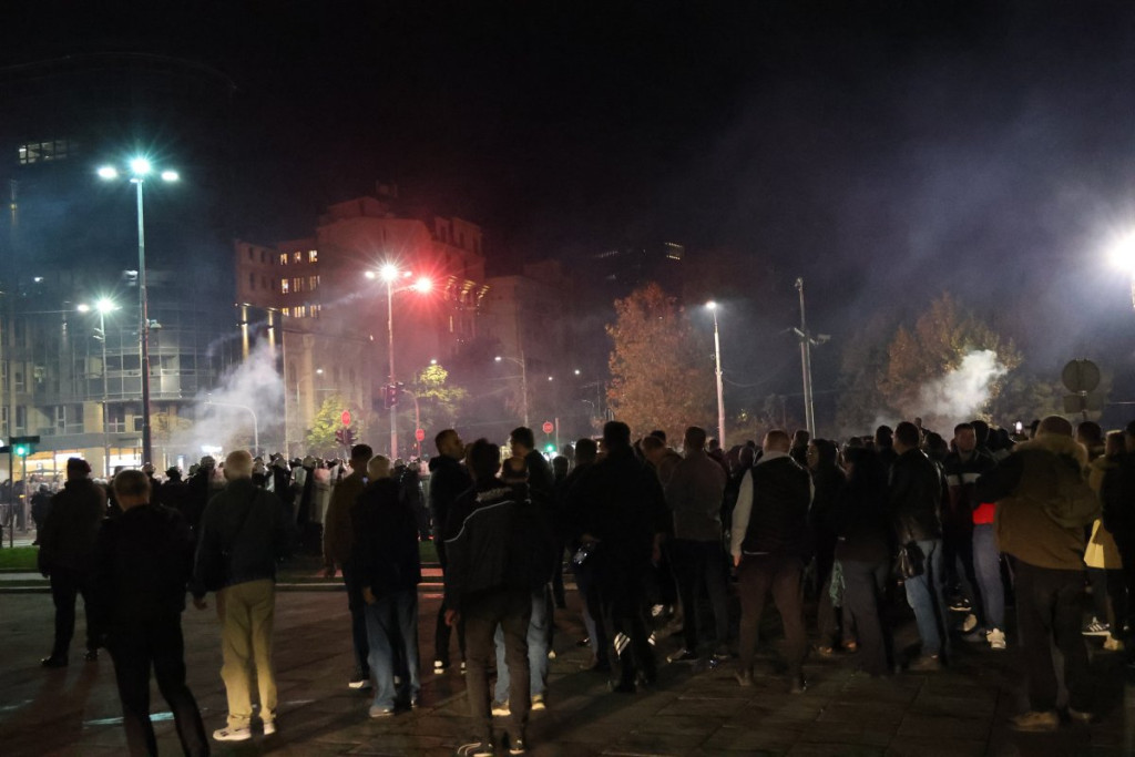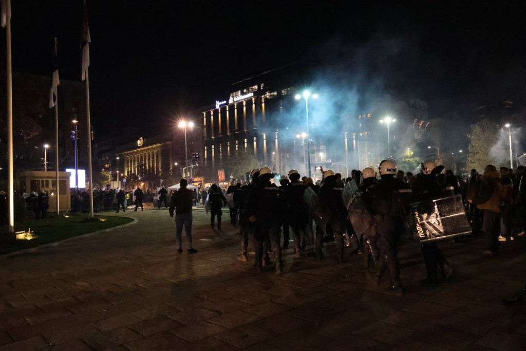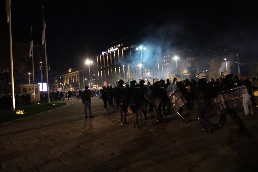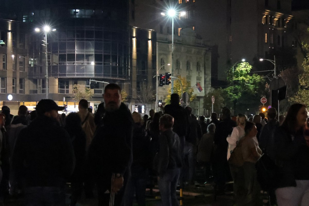 - Grupa iza ograde skače i viče: "Ko ne skače taj je ćaci", na samom platou je i puno simpatizera SNS. Policija je zamolila da ljudi više ne prelize, jer postoji mogućnost da blokaderi planiraju da bace porotehnička sredstva. Pojačane su mere bezbednosti.