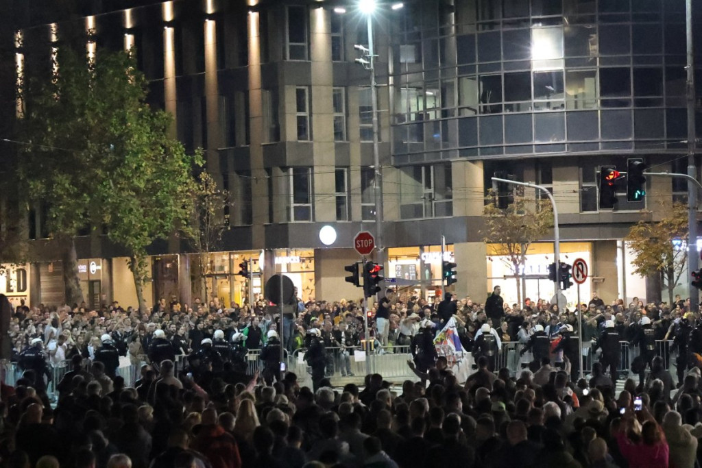 Pripadnici Ministarstva unutrašnjih poslova identifikovali su i uhapsili blokadera S. P. (36) koji se na raskrsnici ulica Takovska i Bulevar kralja Aleksandra, tokom održavanja nasilnog skupa popeo na zaštitnu ogradu i u više navrata nepristojnim gestovima i pokazivanjem polnog organa i srednjeg prsta remetio javni red i mir i izazvao zgražavanje okupljenih građana.