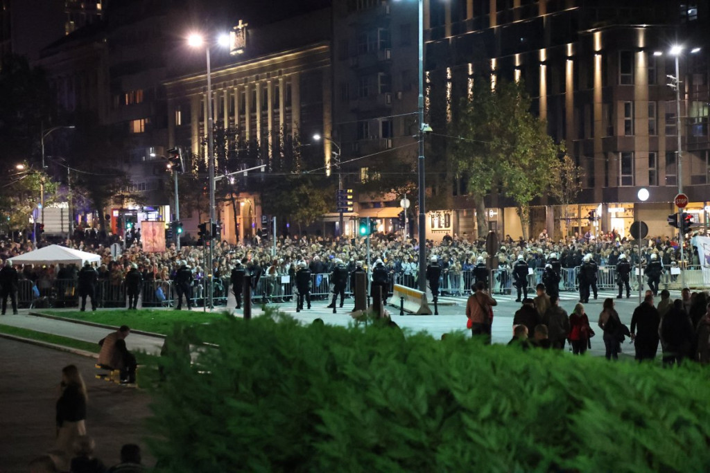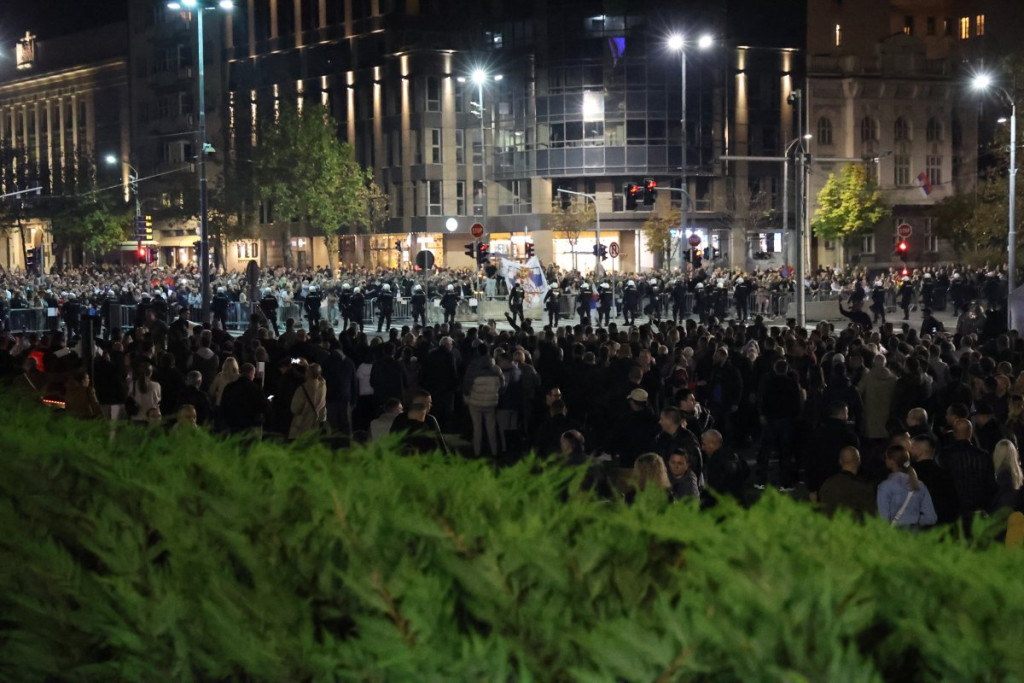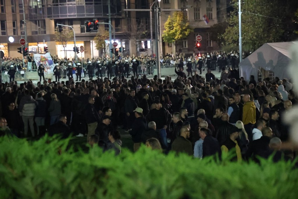 - Trenutno je mirno, ali blokaderi raznim komentarima i uvredama dižu tenziju. Oko celog platoa su policajci, jer se očekuje dolazak blokadera sa raznih strana - a jedna od strana je Trg Nikole Pašića. Sada ih je oko 450.