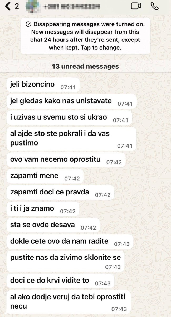 - Je li bizončino, je l gledaš kako nas uništavate i uživaš u svemu što si ukrao? - glasi samo deo onoga što je stiglo na telefon Vladimira Đukanovića.